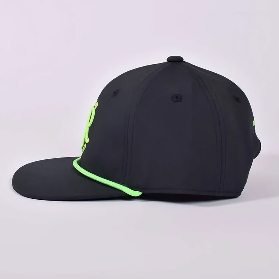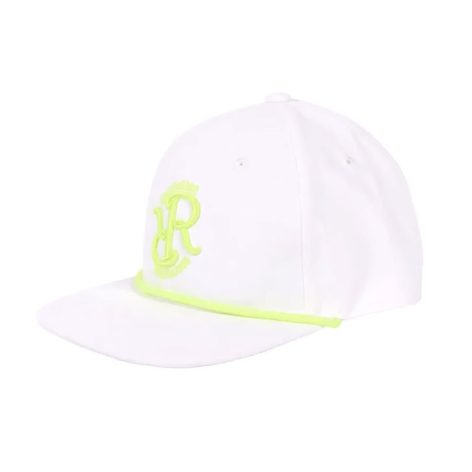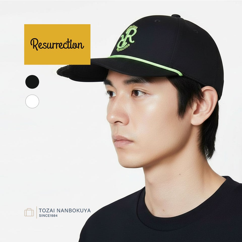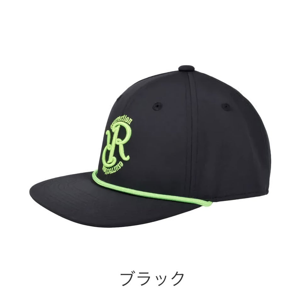 フロントのRRロゴとツバのアクセントロープにネオンカラーを採用し、都会的で洗練された印象を演出します。程よいインパクトがありながらも上品な仕上がりで、レザレクションらしい高級感を感じられるデザイン。シンプルなコーディネートにも映える存在感のあるキャップです。