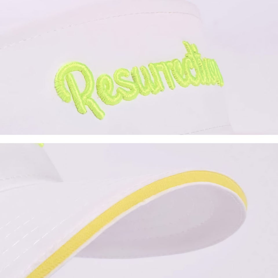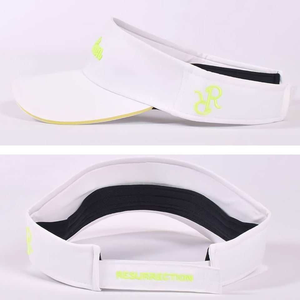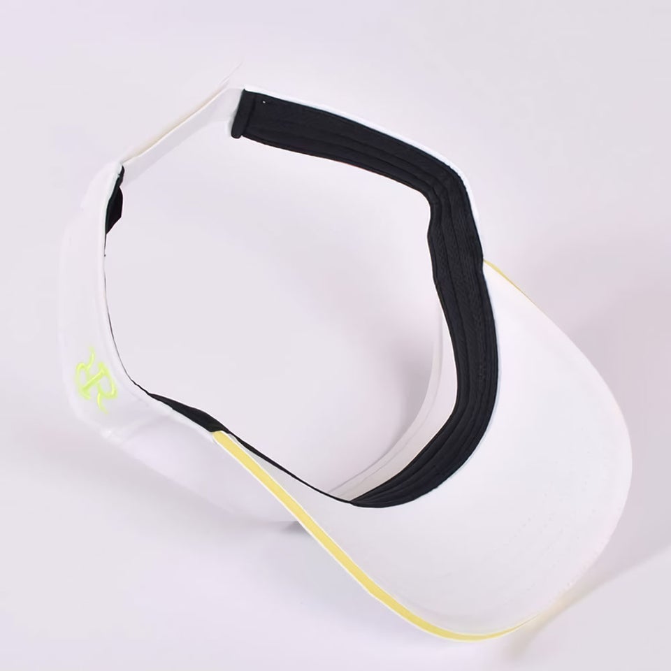 フロントロゴだけでなく、サイドのRR刺繍やバックロゴまでネオンカラーで統一されています。細部までこだわったデザインにより、どの角度から見てもスタイリッシュな印象を与えます。ラウンド中でも自然と目を引く完成度の高いサンバイザーです。