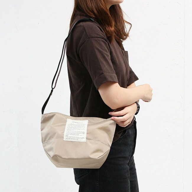 ロゴが入った太めのショルダーがポイント。小さいながらもしっかりとマチ幅があるので見た目以上に収納できます。