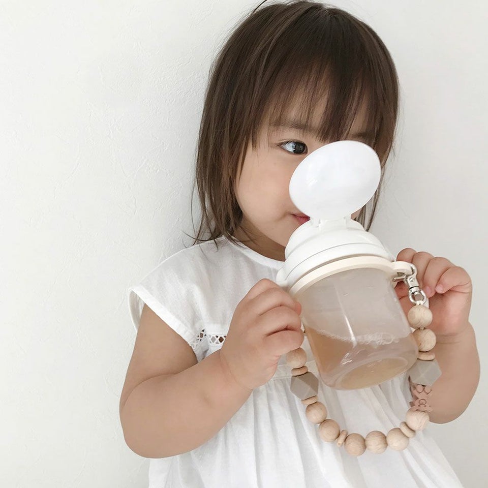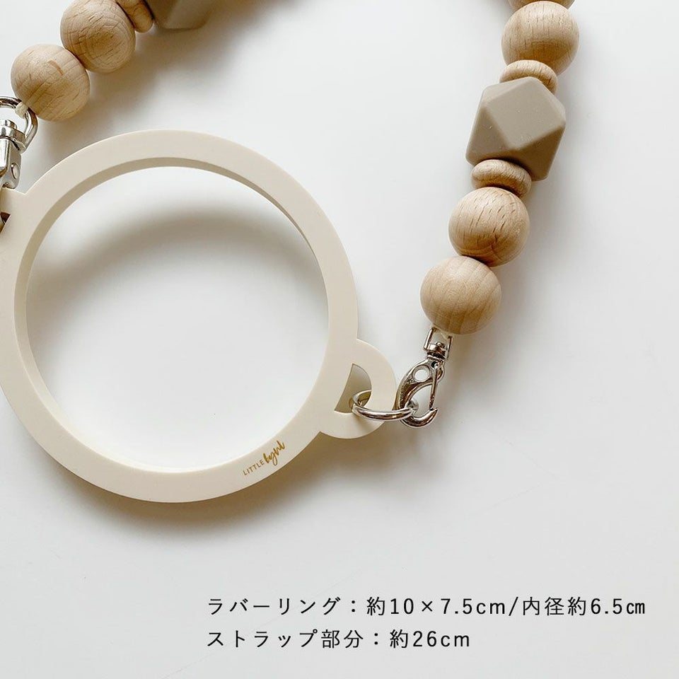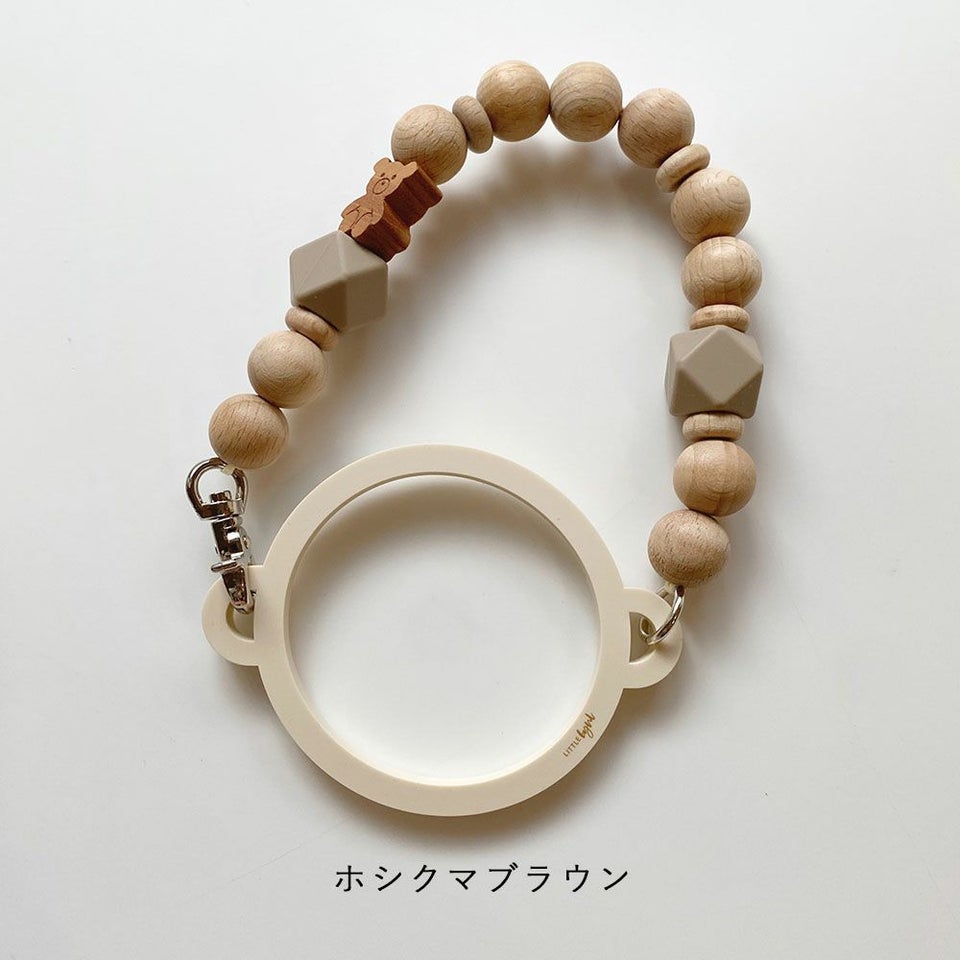 ラッピング無料 りとるびょる オリジナルビーズのほしくまデザインのストラップ、ナチュラルベージュのラバーリングのマグホルダー