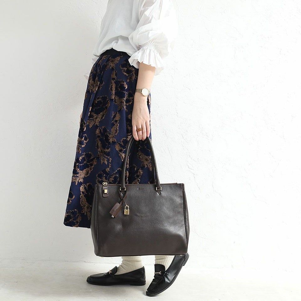 鍵付きでロックが可能 A4サイズが収納可能なヤギ革トートバッグ A4対応 mononogu Bridge Tote br5-gs