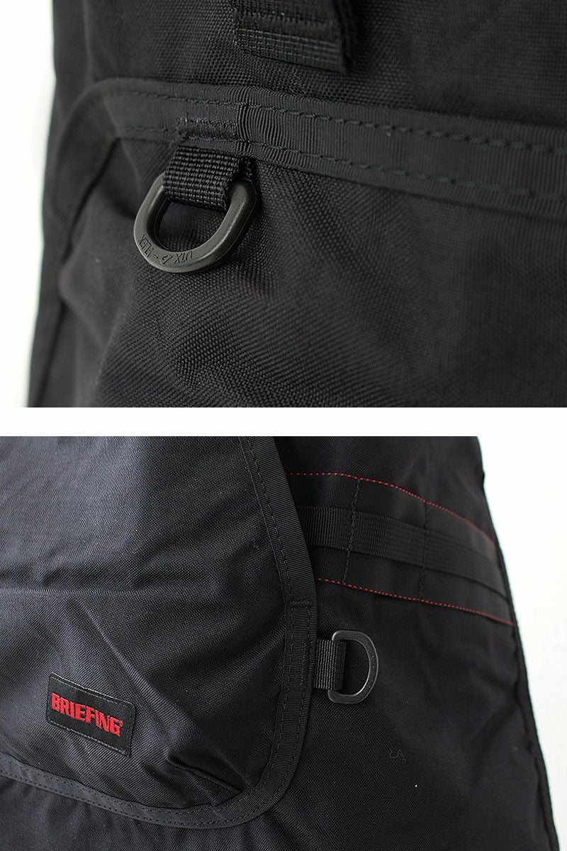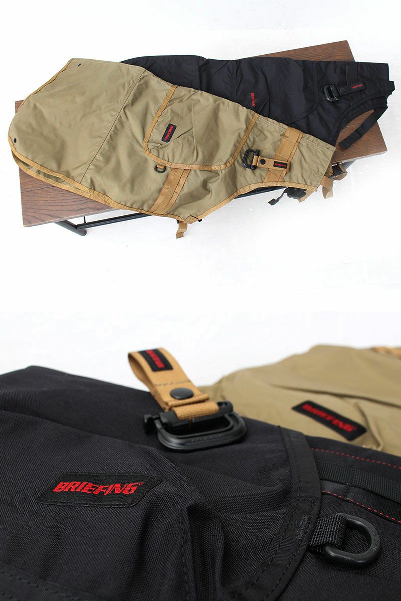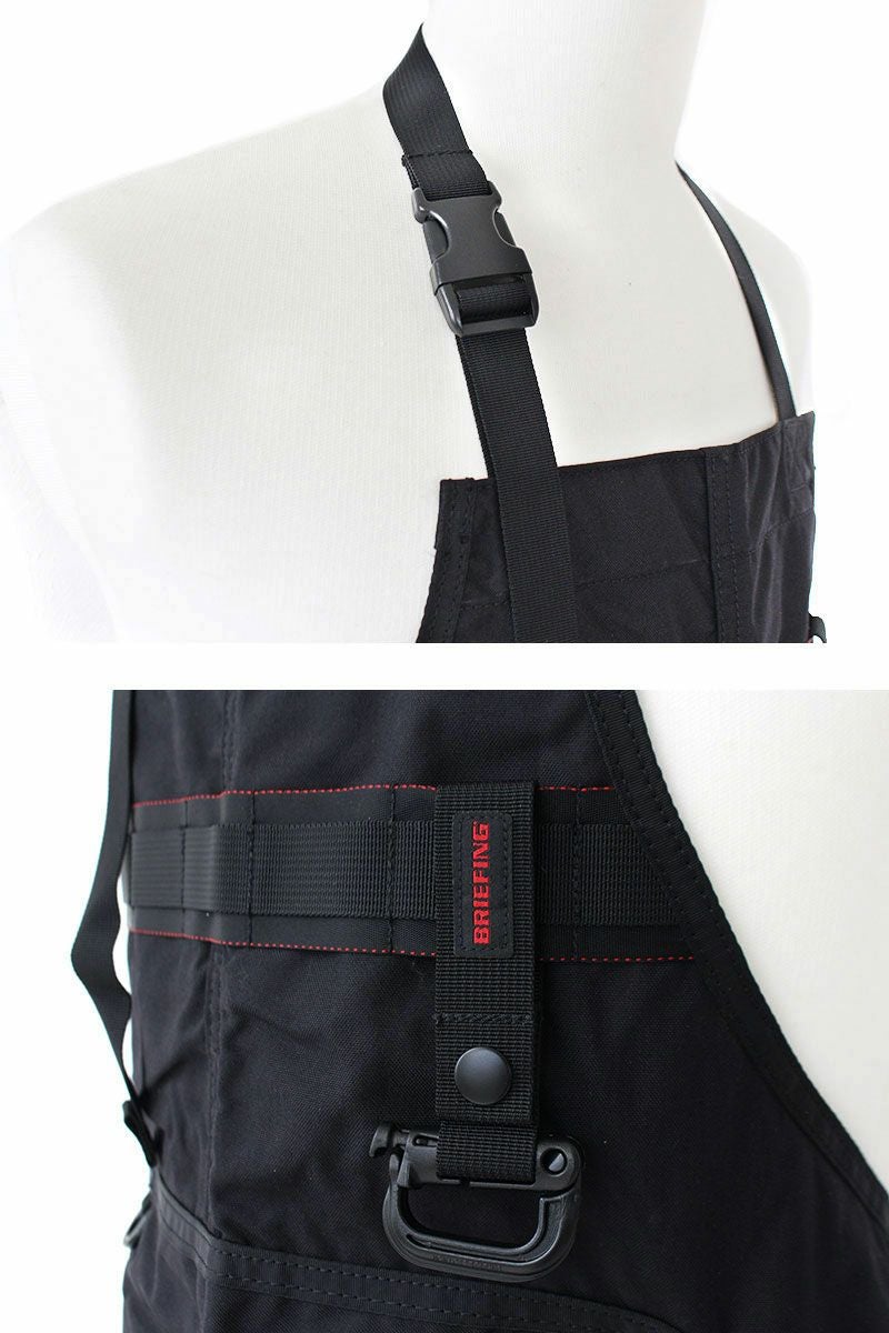 腰や首紐部分のサイズ調節パーツにはカバンに使用されるバックルを採用し、BRIEFINGらしい武骨感を演出。