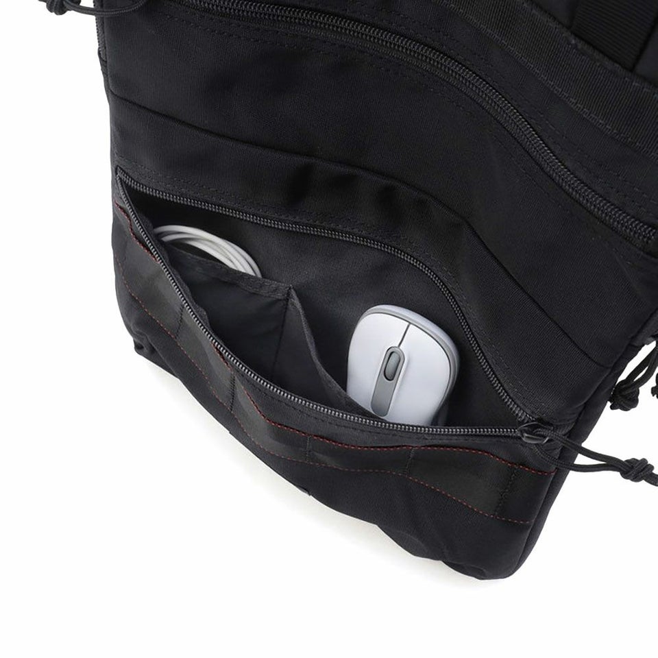 フロントポケットはPC周辺機器やノートなど関連するアイテムを収納するのに便利です。