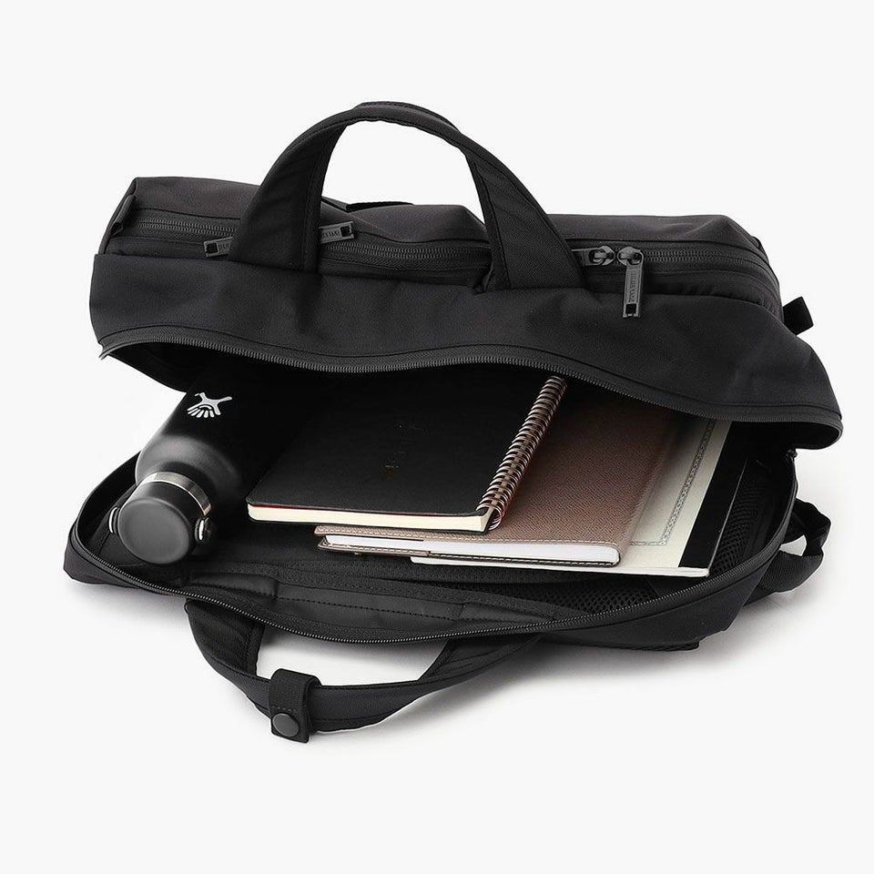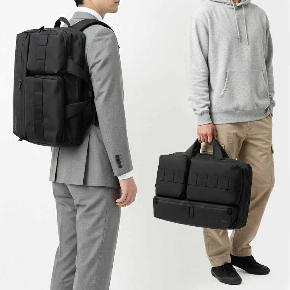 リュックスタイルと手持ちスタイルをシーンや装いに合わせて使い分けできます。通勤時は背負って快適に、商談時は手持ちでスマートに持てるため、1つで多様な使い方ができる実用性の高い設計です。