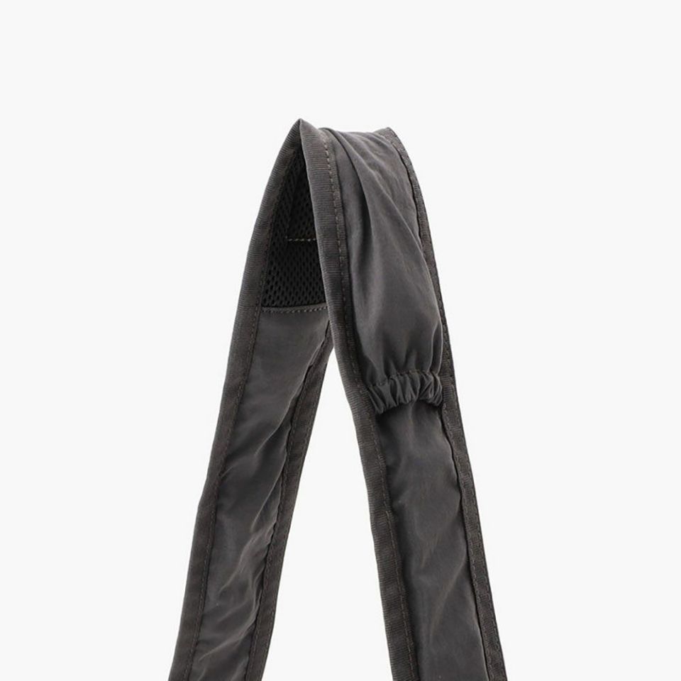 ショルダーストラップは内蔵されたアジャスターによって、容易に長さを調節することが可能なのはもちろん、縮んだショルダーストラップの形状が存在感を発揮。