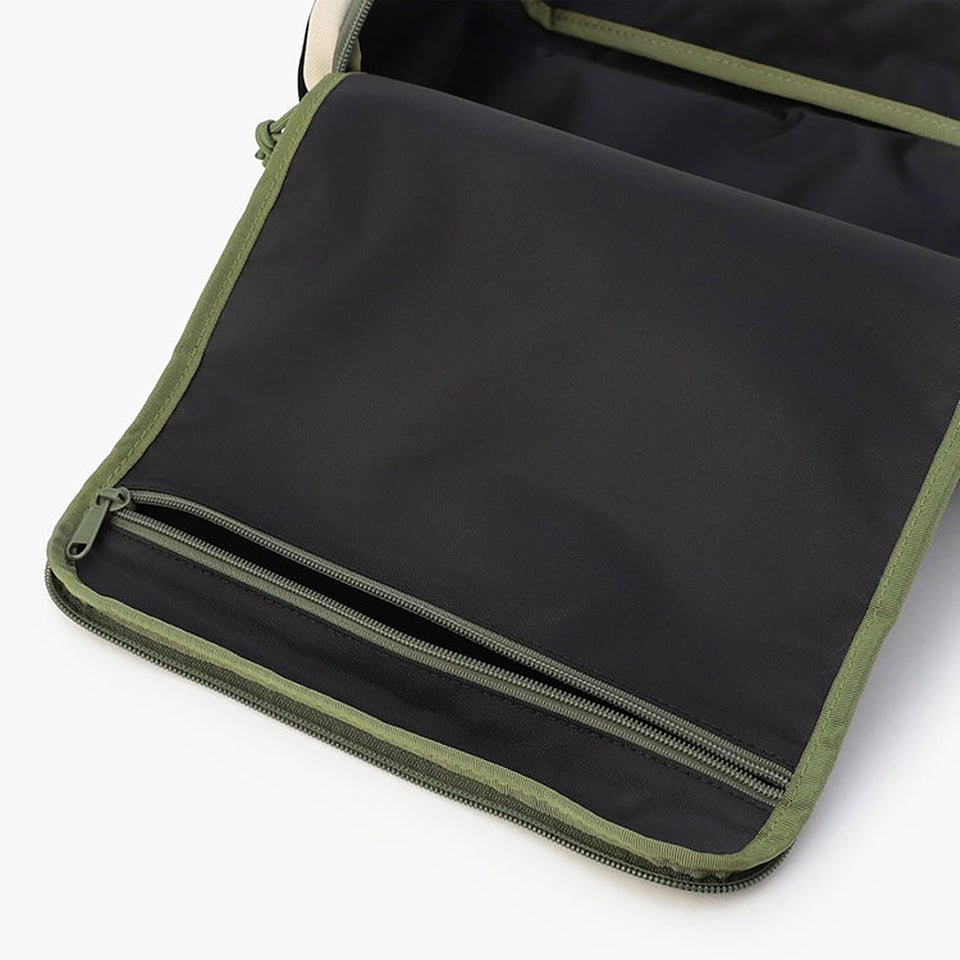 内装にはジップ付きポケットを1か所配置し、小物の仕分けに便利。ケア用品や靴下などを分けて収納でき、ケース内をすっきり保てます。細かな使い勝手にも配慮した構造です。