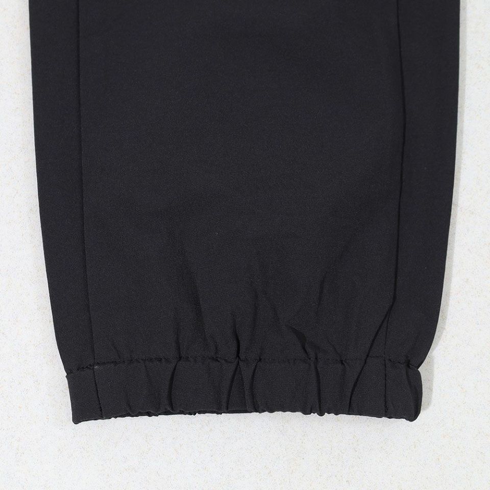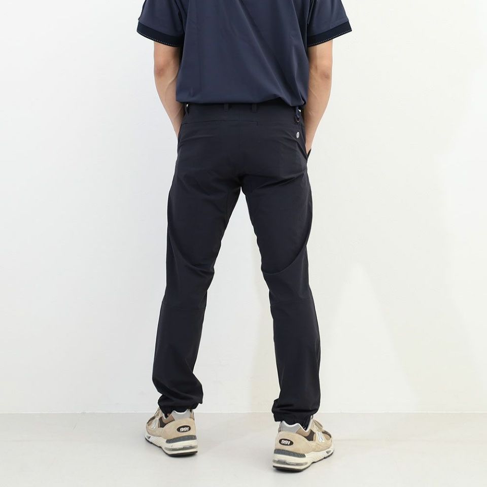 裾リブ仕様で動きやすく、スポーティな印象を持ちつつ、ポケット周りなどにはスラックスのディテールを取り入れて上品な表情をプラス。カジュアルになりすぎず、大人のゴルフスタイルにフィットします。