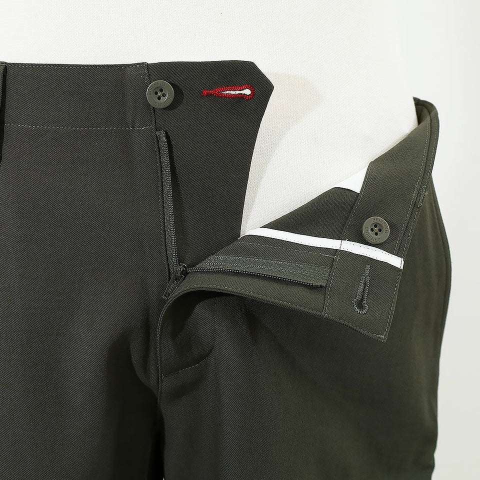BRIEFINGを象徴するミリタリーの要素を取り入れながらもサイドポケットは、内側に袋布を付けることで主張を抑え、都会的なルックスに。