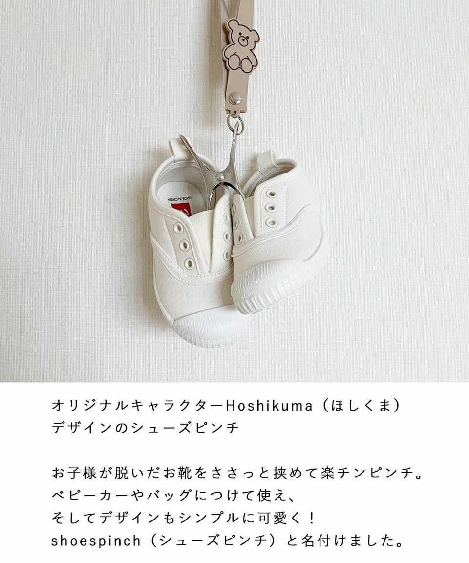 ベビーカーやバッグにつけて使え、そしてデザインもシンプルに可愛く!shoespinch(シューズピンチ)と名付けました。