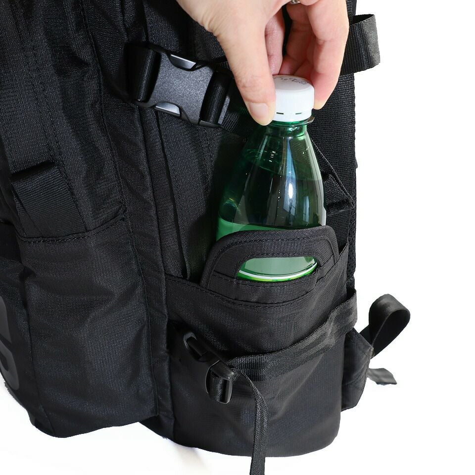 両サイドには500mlのペットボトルが収納可能なポケットが備わっています。
