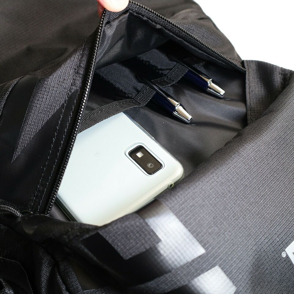 フロントのファスナーポケットは、ペンホルダー×2とオープンポケット×1を内蔵しています。
