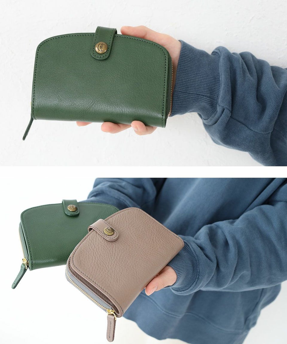選べるノベルティプレゼント!ラウンドフォルムが可愛い日本製 レザーウォレット ポケットが充実して使い勝手抜群 送料無料