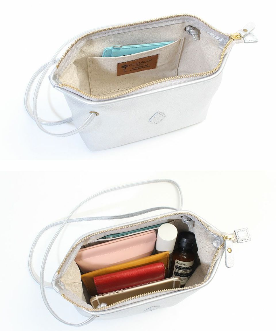 立体的なつくりに加えて柔らかな革がふっくら膨らみ、お財布、キーケース、ハンカチ、 パスケース等のお出かけ携行品もきちんと受け止めてくれます。