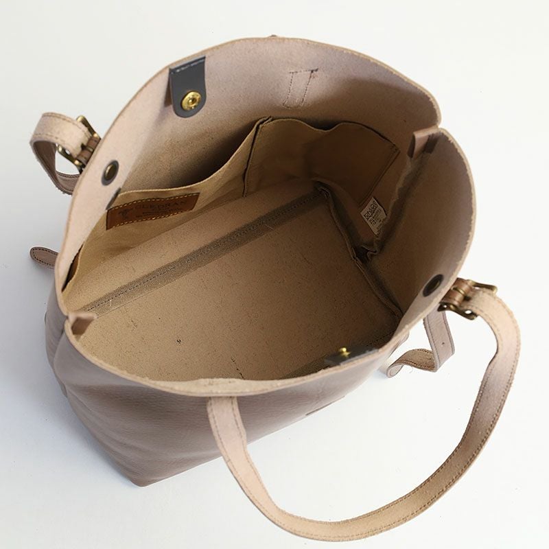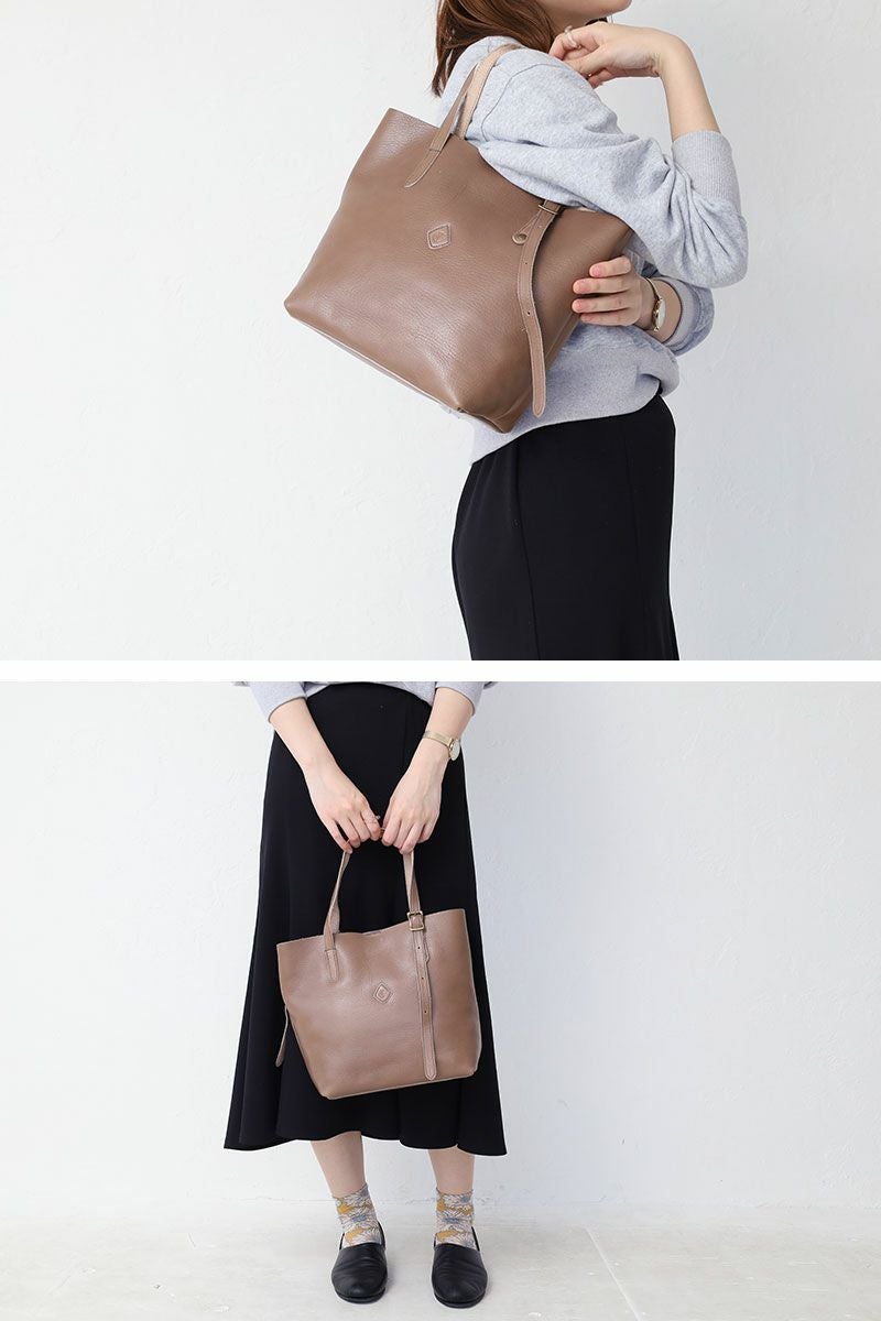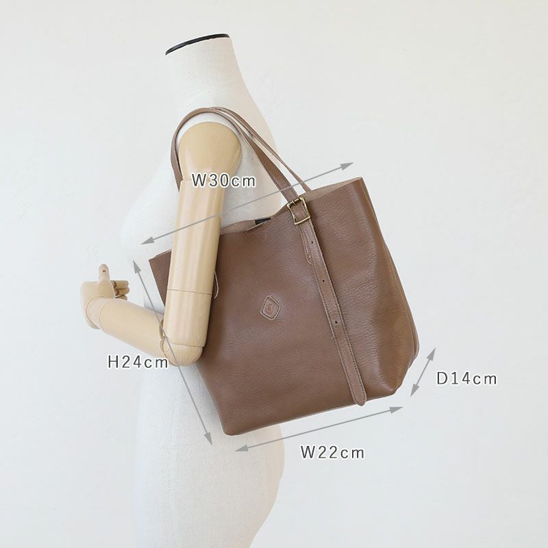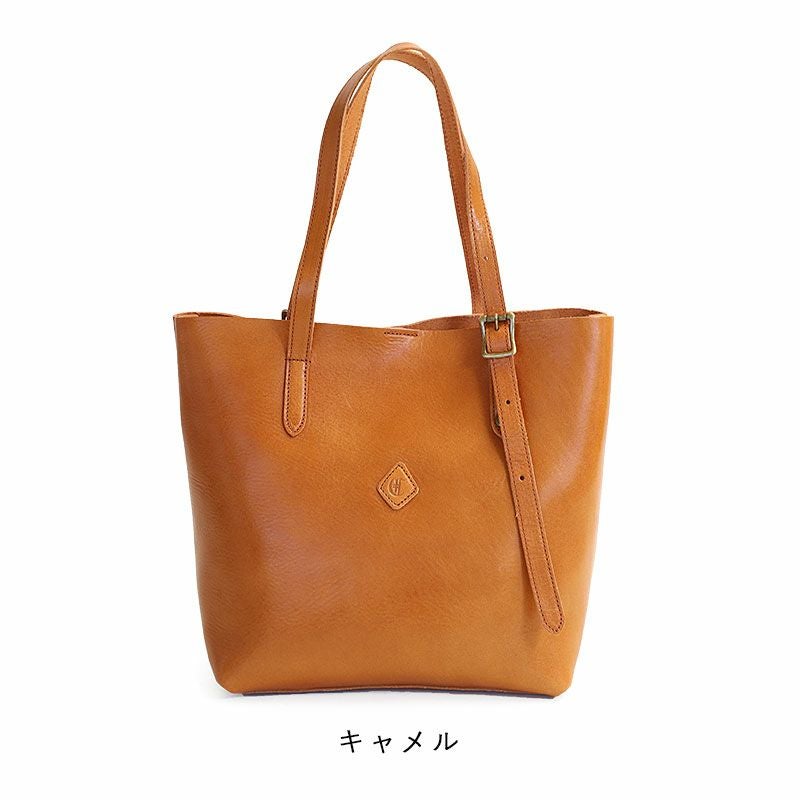 オイルをたっぷりと含ませた艶やかなレザー仕立てのトートバッグ