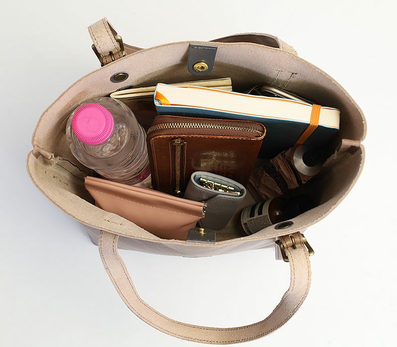 マチ幅を広めに設定し、500mlペットボトル、長財布などが収納可能です。