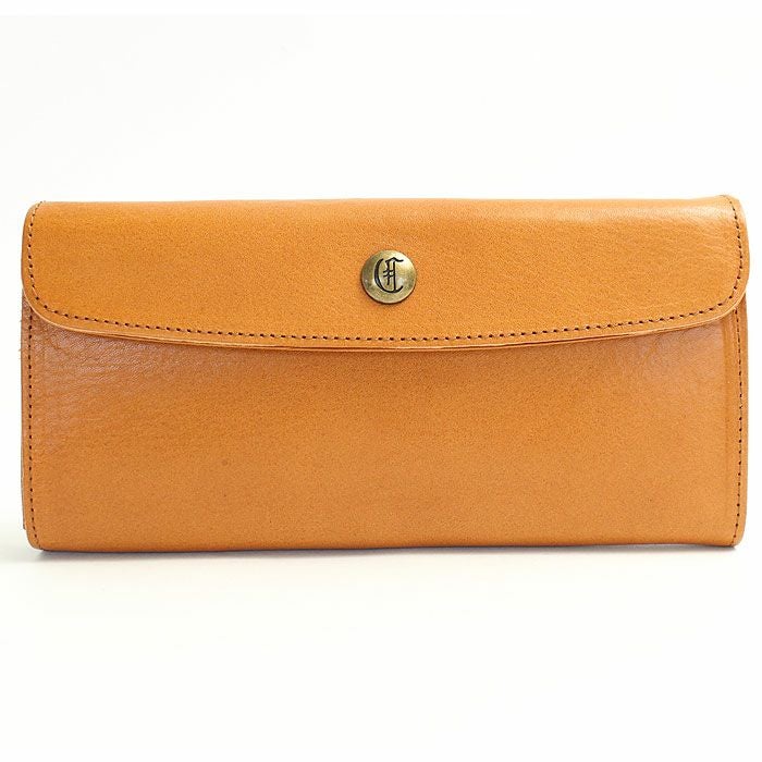 オイルをたっぷりと含ませた艶やかな牛革仕立て。高さ控えめのスマート設計に、 フラップの曲線でひと匙の愛らしさを添えて…スタイリッシュな印象の中にも愛嬌を感じられる長財布です。