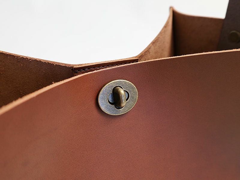 おおらかな一枚革の上で静かに輝く捻り金具。