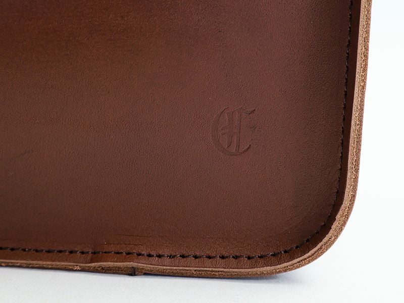 ブランドマークはエンブレムではなく刻印にすることで捻り金具が際立ち、革本来の表情も存分に堪能できます。
