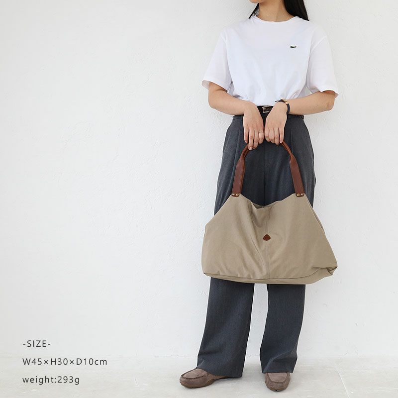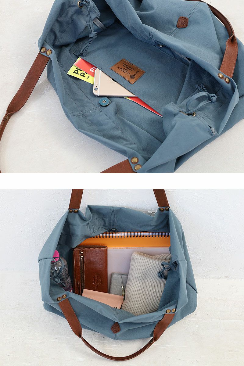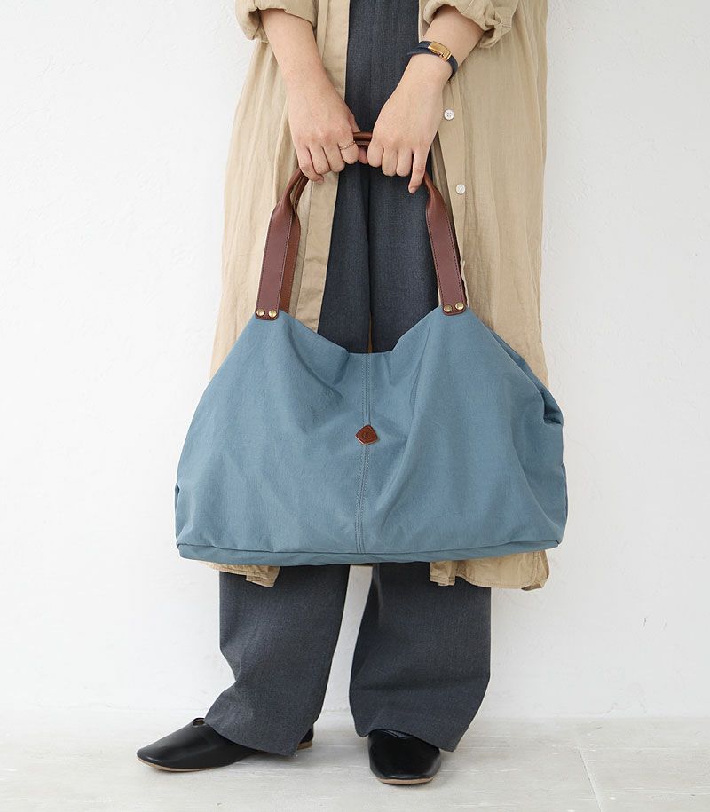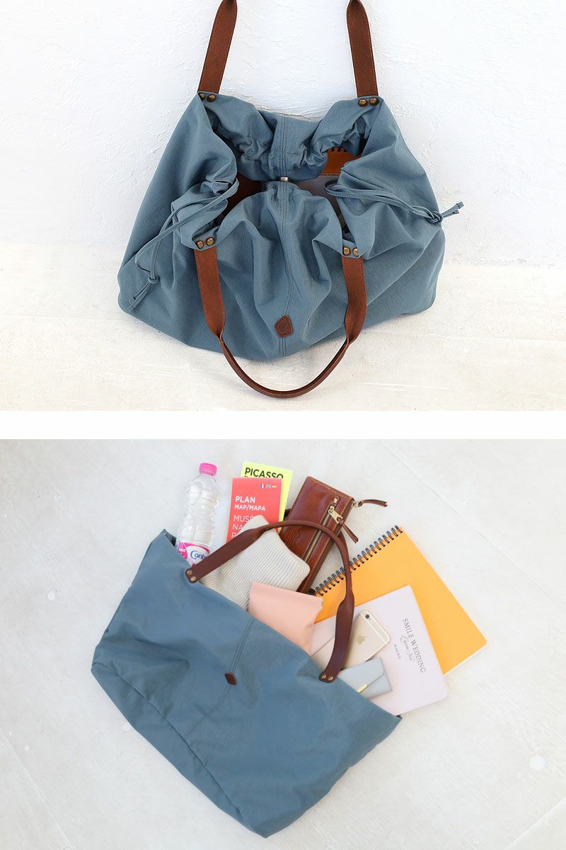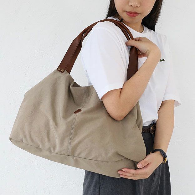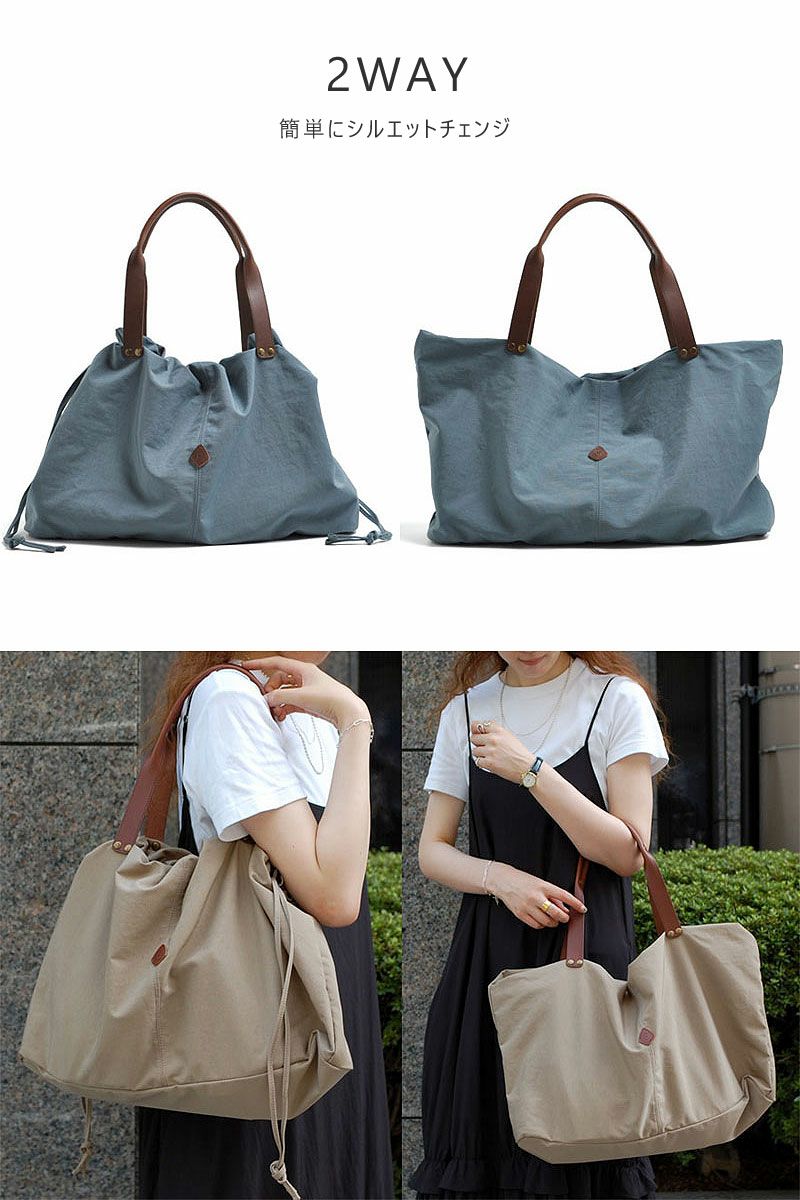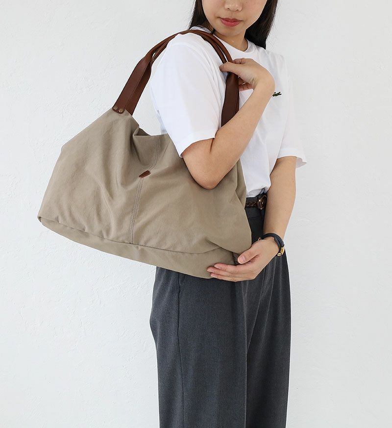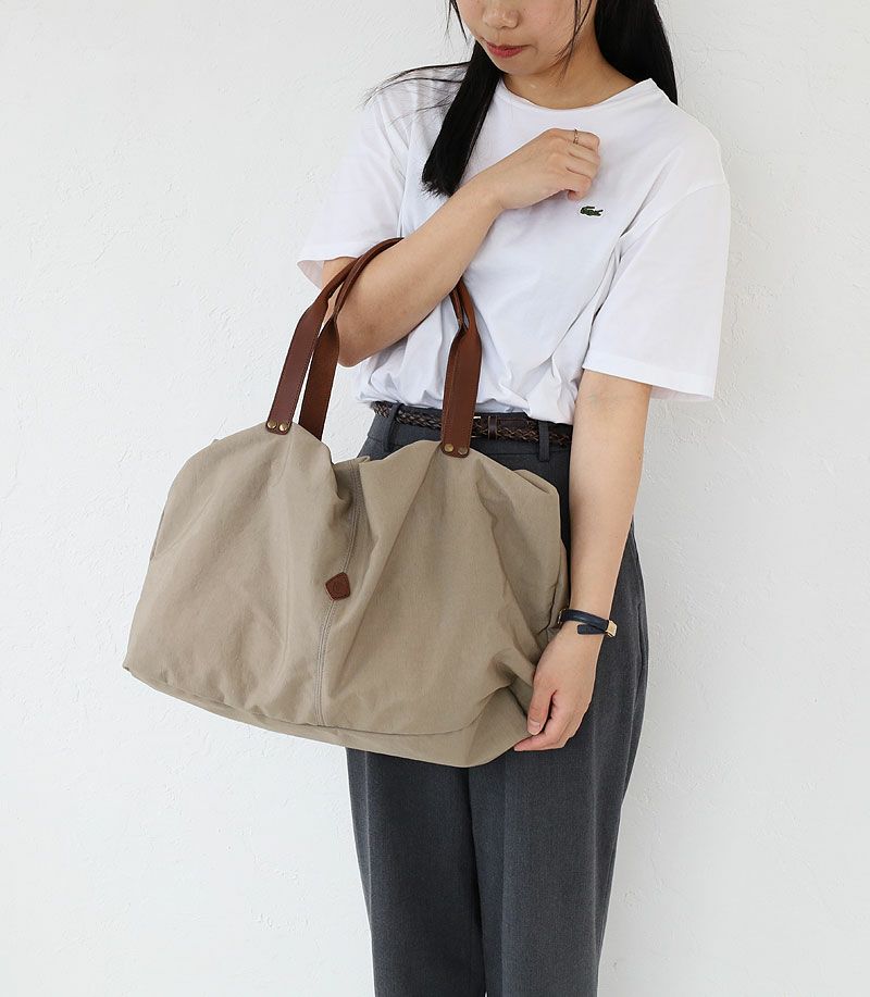 荷物が多い時はそのワイドシルエットを存分に使ってベーシックなトート型で、 荷物が少ない時には両サイドの紐をキュッと絞って可愛らしい巾着型にすれば、 同時にボリュームダウンも叶います。