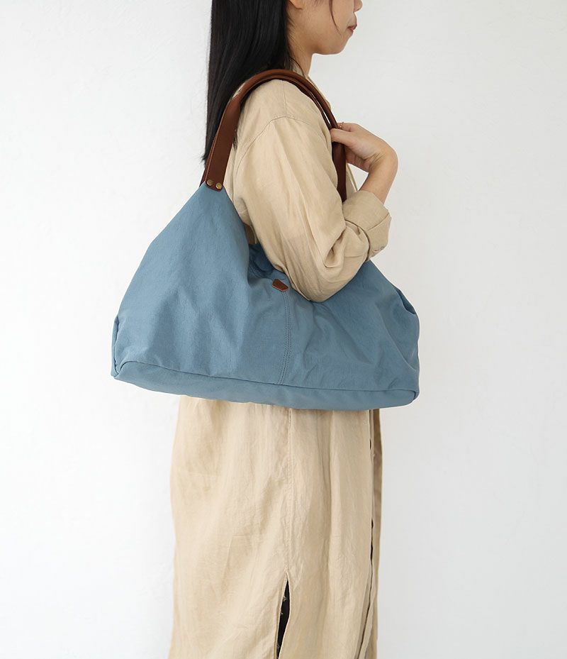 薄くて軽いナイロン素材だから肩に掛けても収まりがよく、 バッグ自体の重さを気にせず使えるのも嬉しいポイント。
