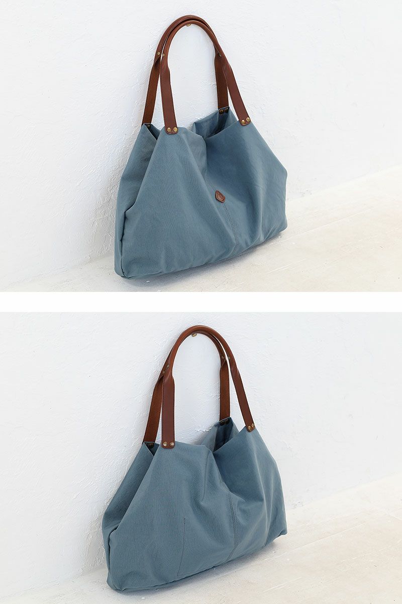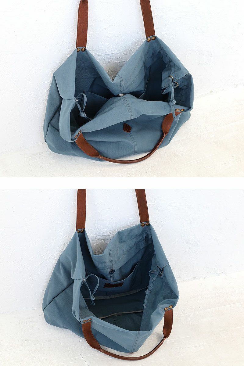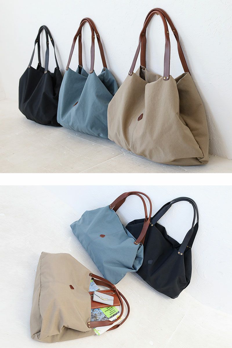 口元の閉じ方で簡単に見た目を変えられるトートバッグ。