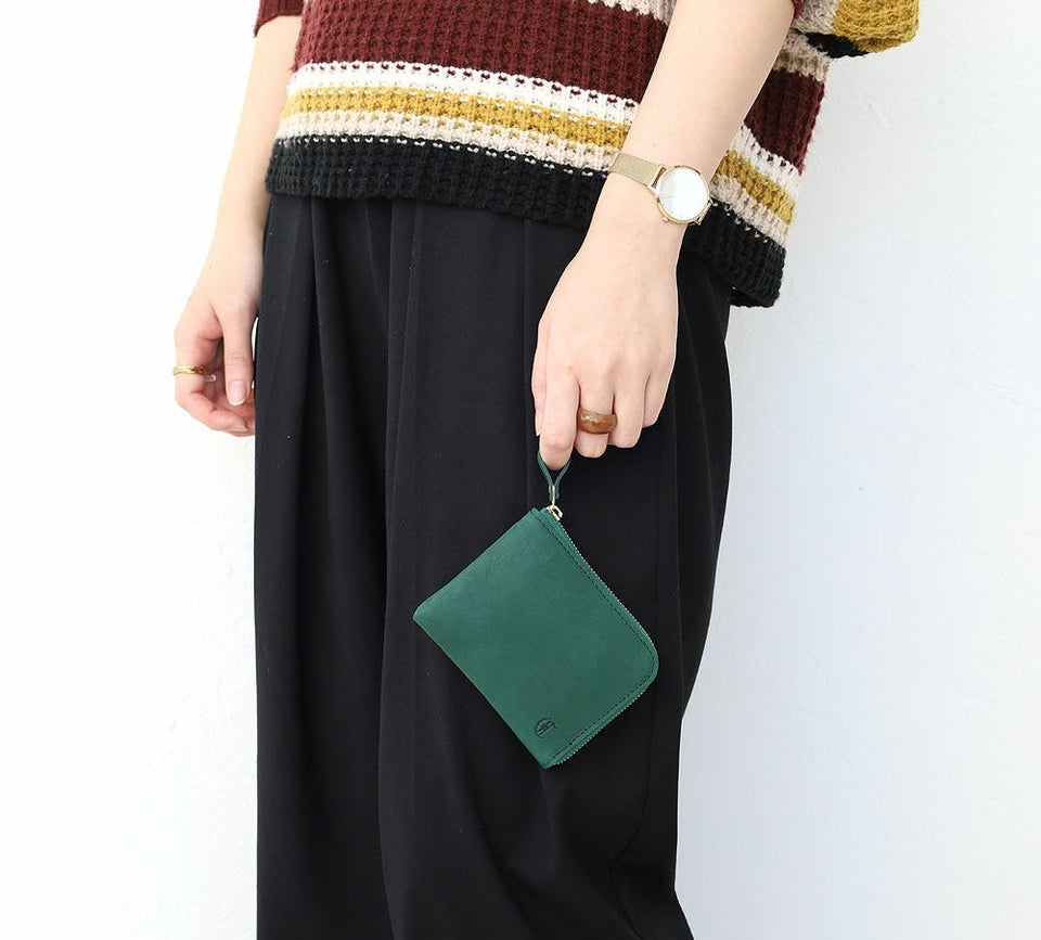 スリムでシンプルなミニ財布。手のひらに収まるコンパクトサイズは、