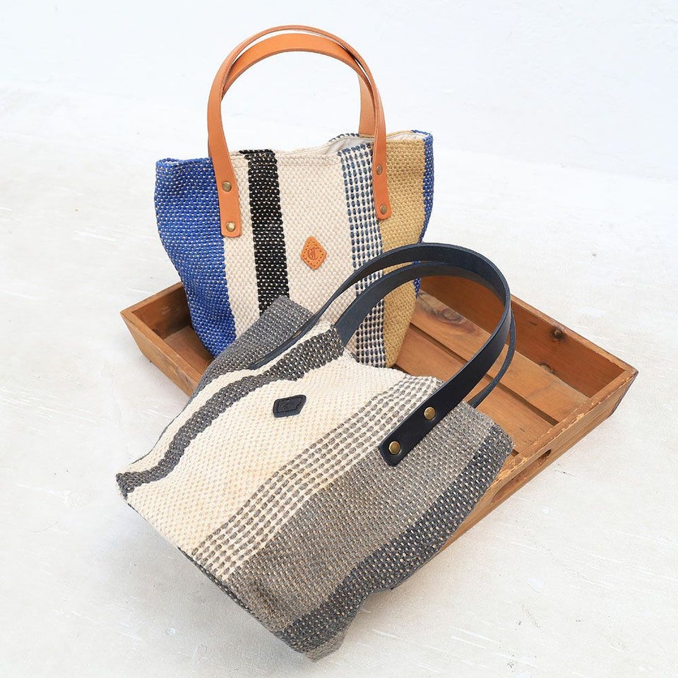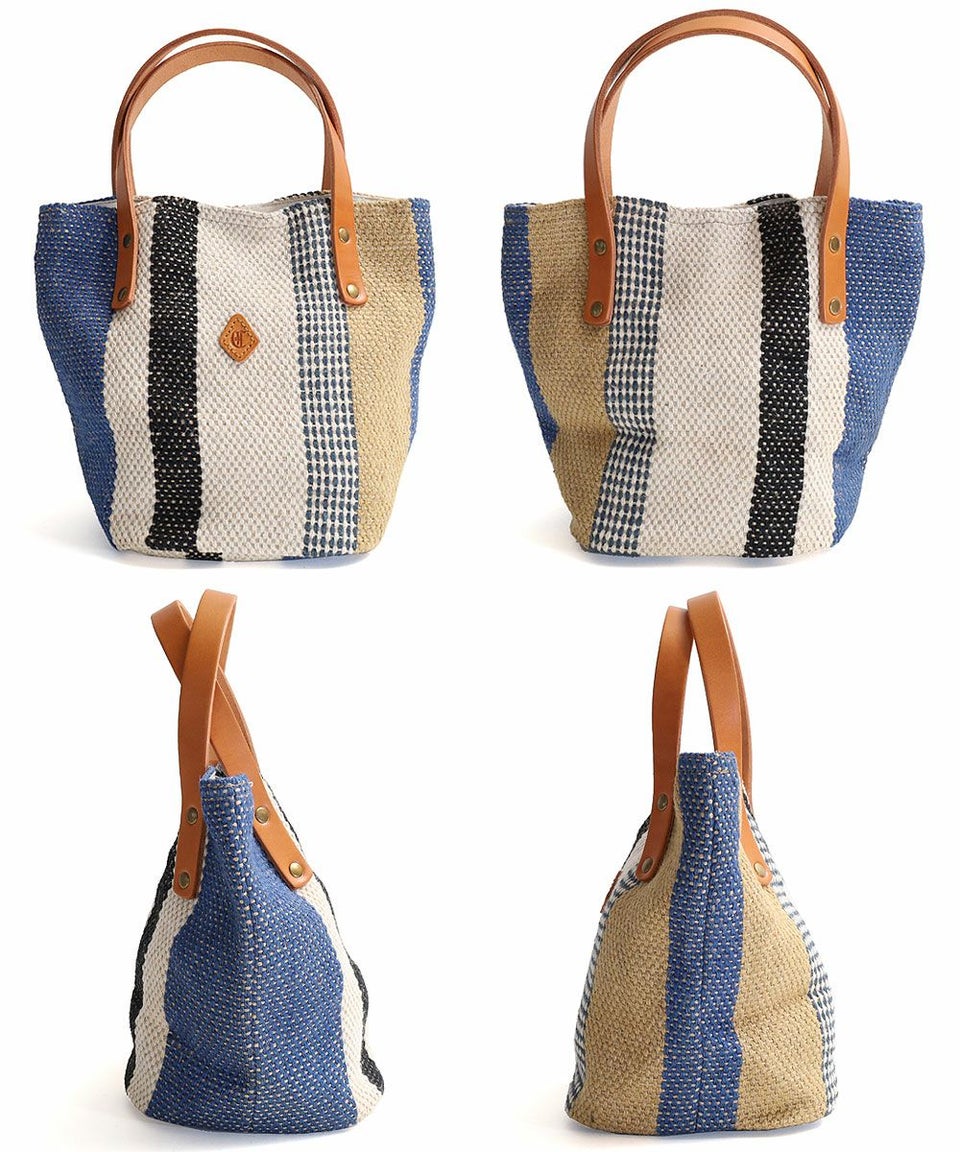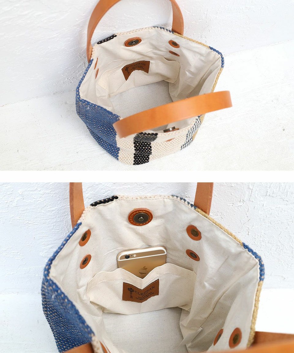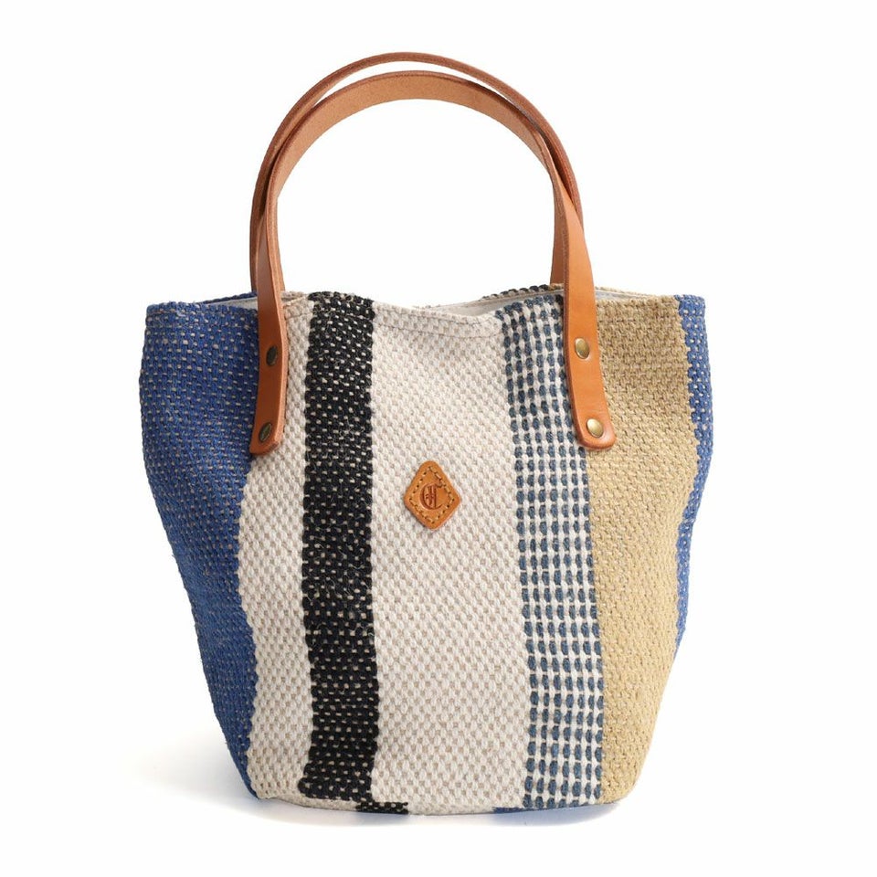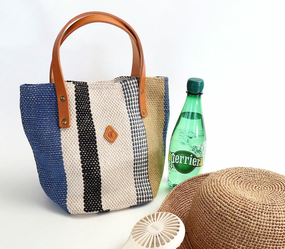 アクセントでキナリ色のコットンジュートも織り込んだ、ミニサイズ仕立てのカゴバッグです。