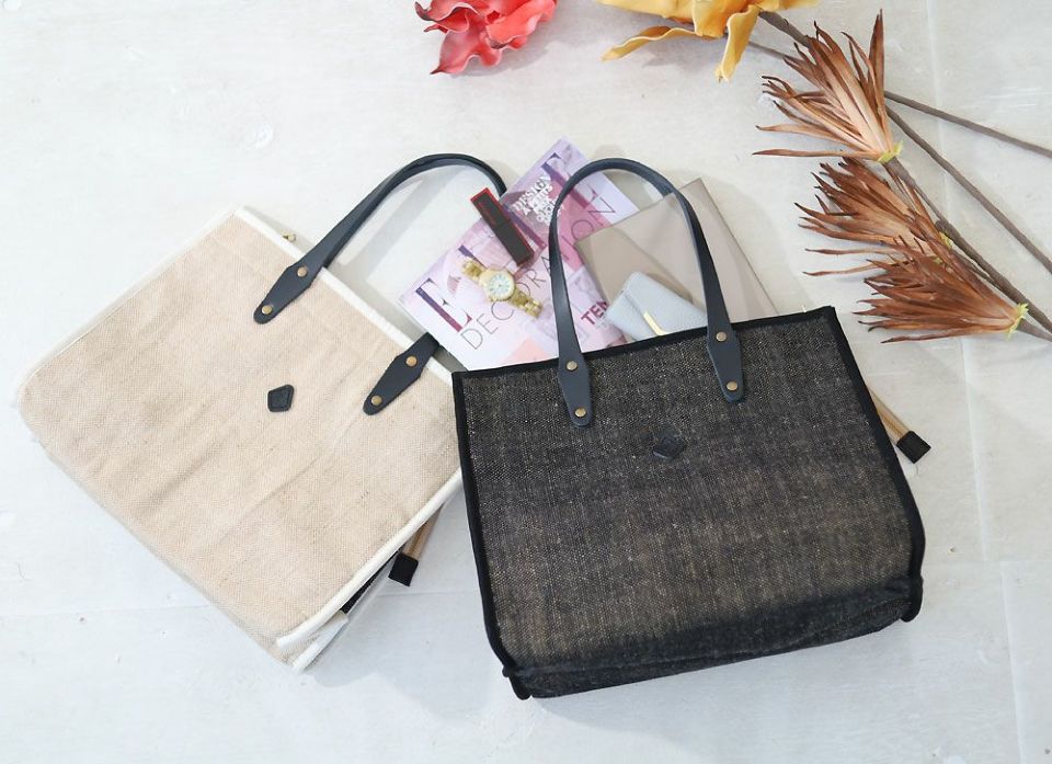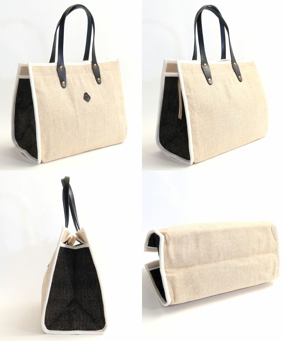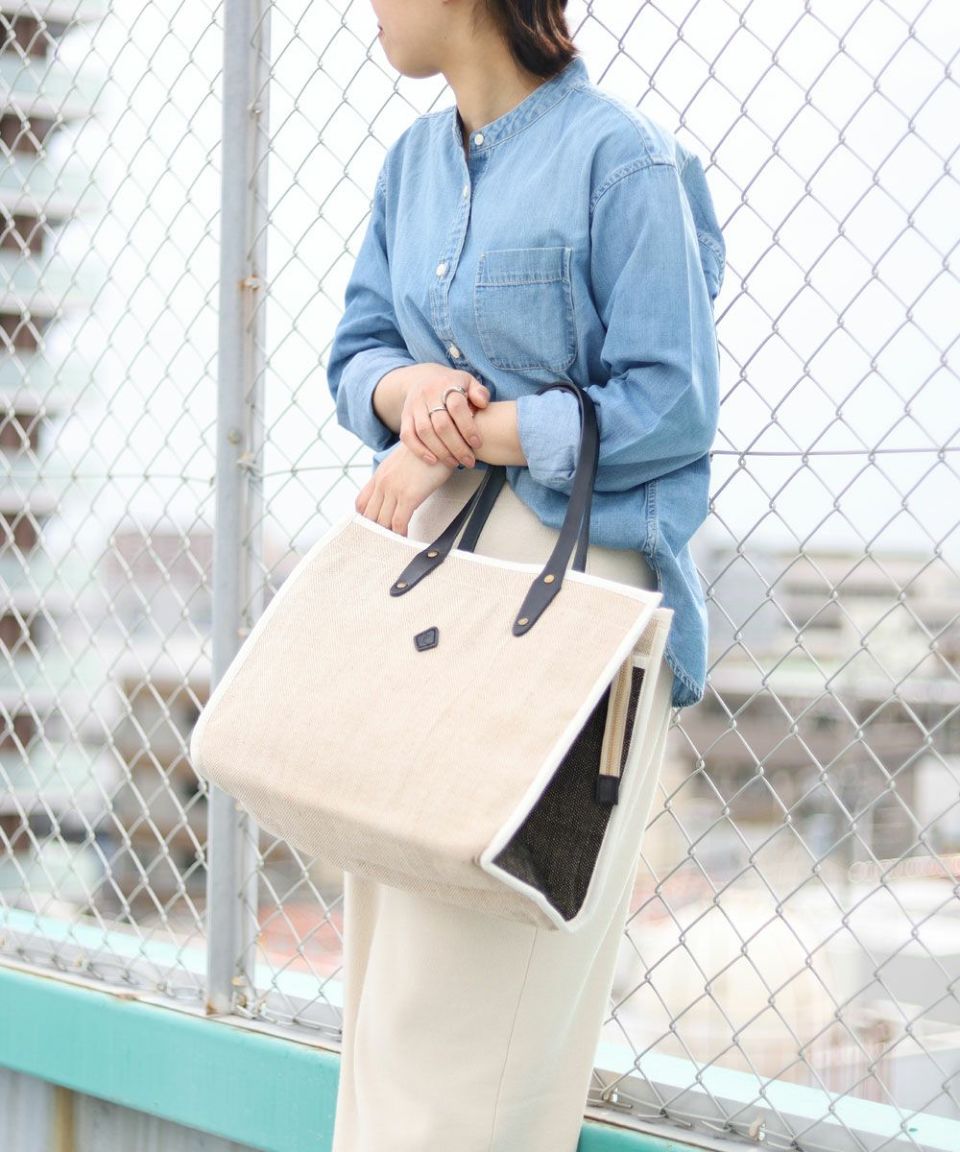 コットンジュートで仕立てたトートバッグ。