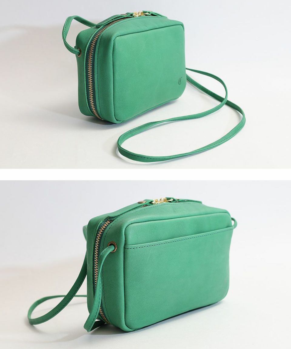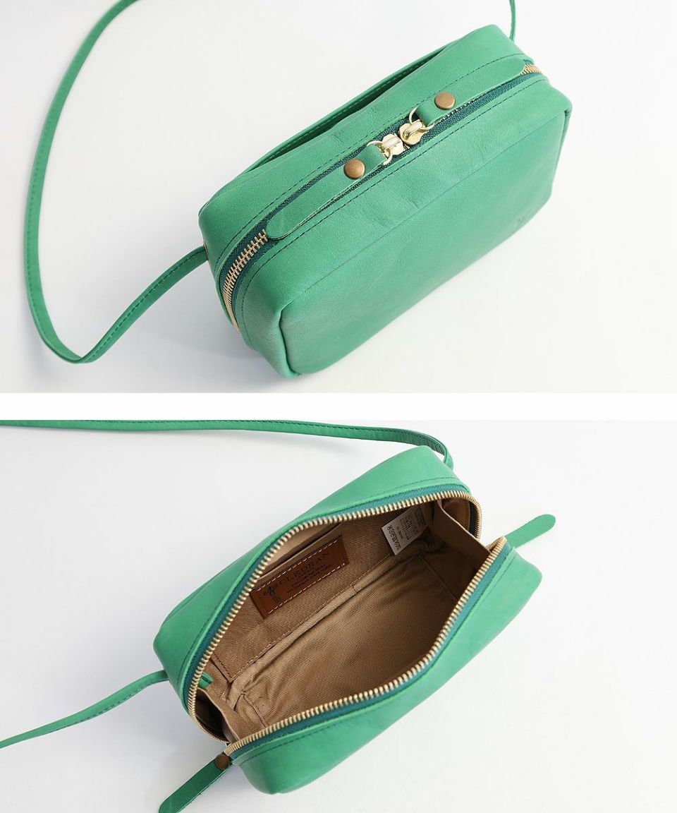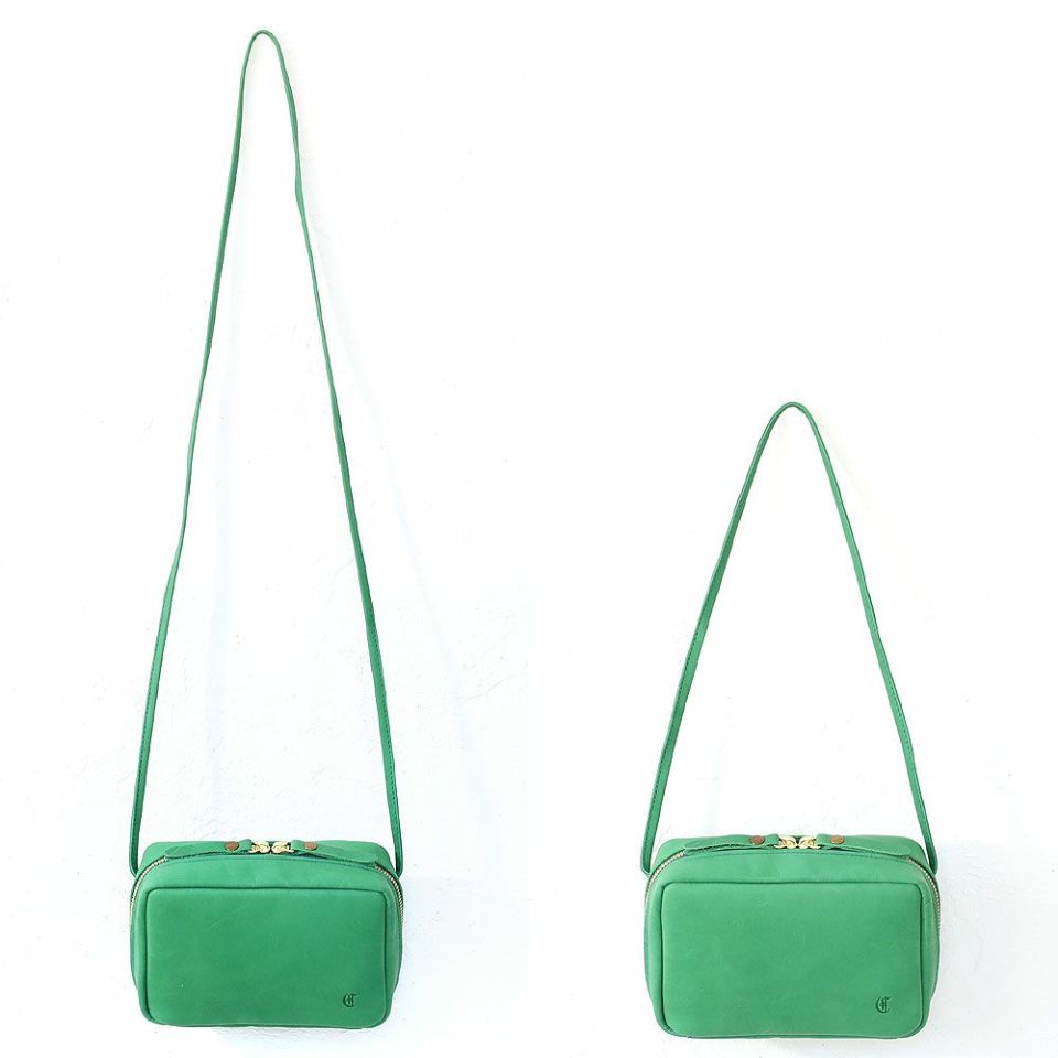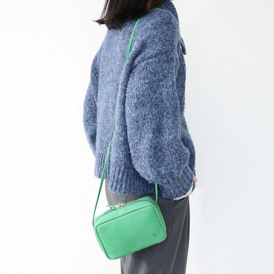クールな箱型形状を、ナチュラルな風合いのレザーで可愛らしいサイズに。