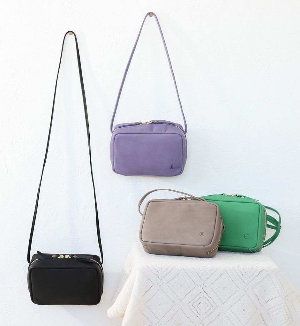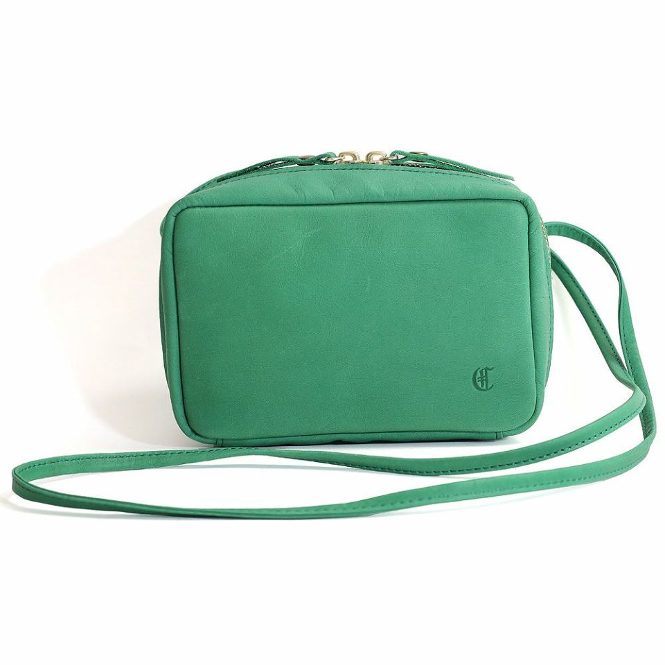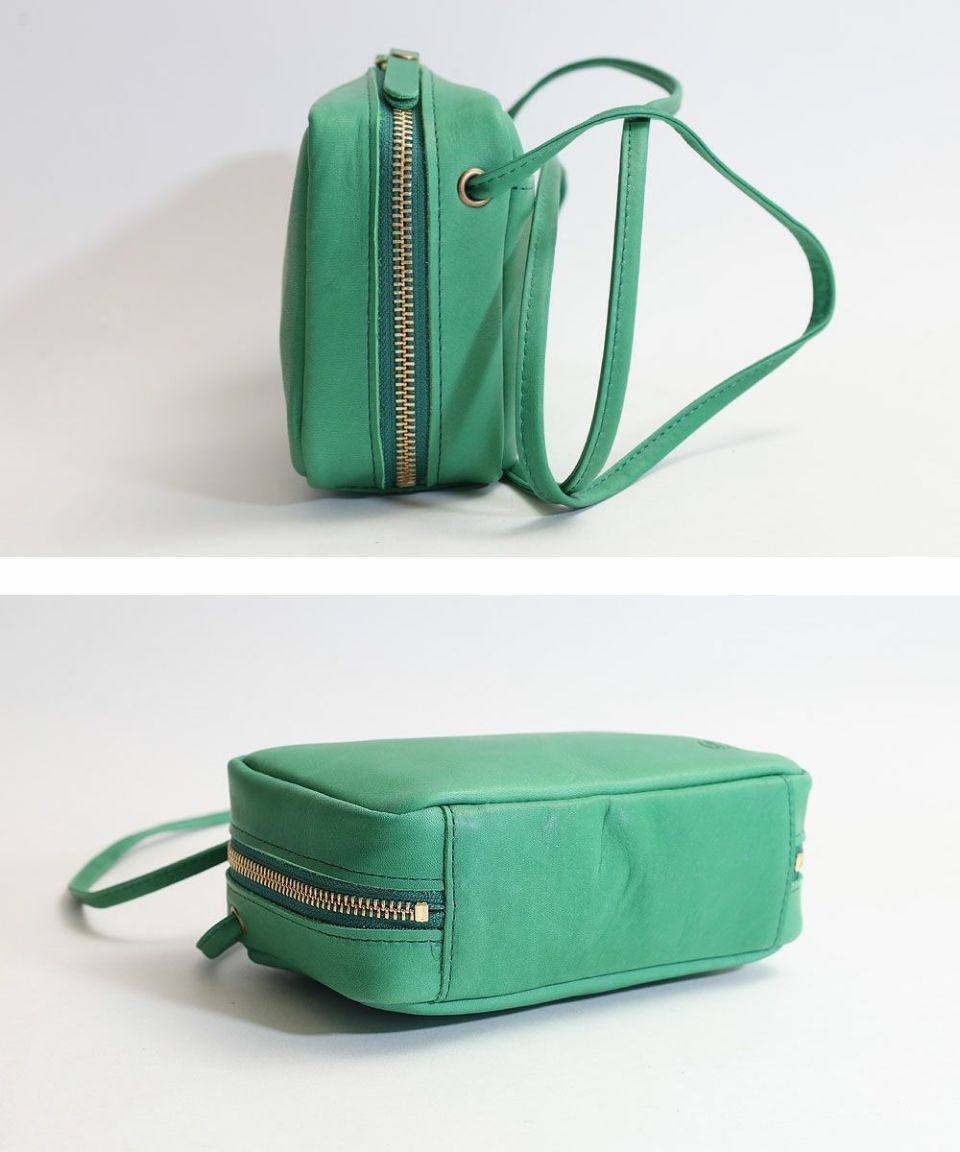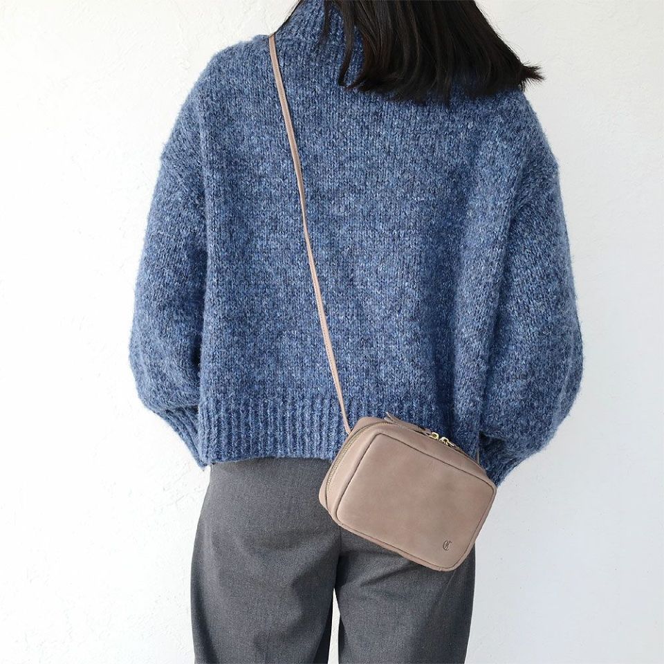 クールな箱型形状を、ナチュラルな風合いのレザーで可愛らしいサイズに。
