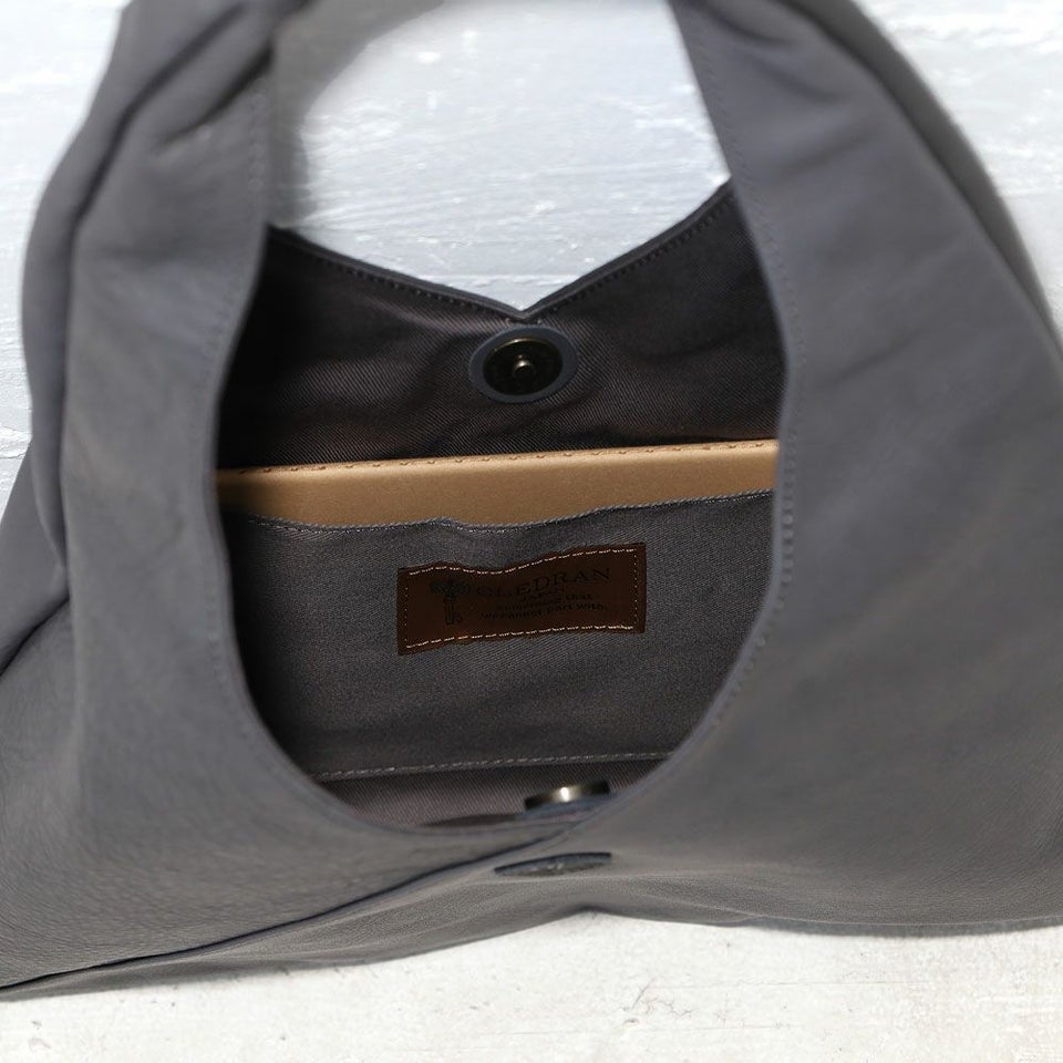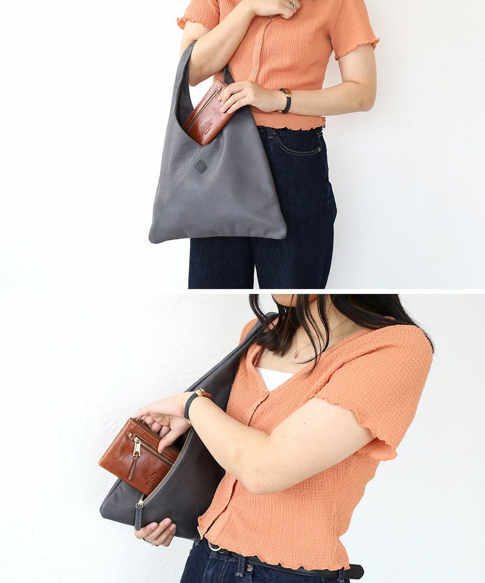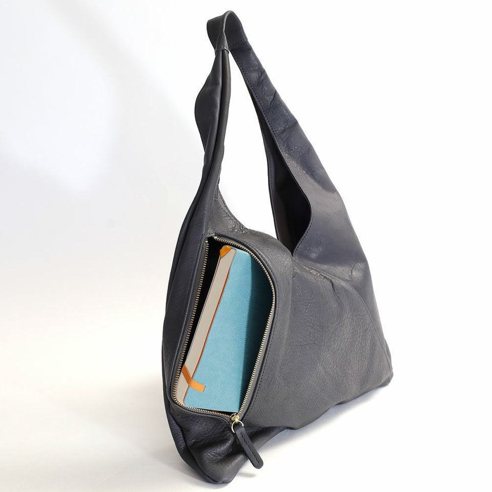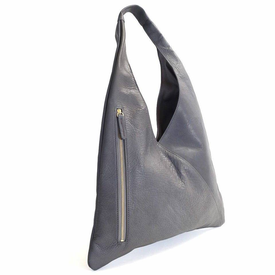 手に持っても、肘に掛けても、肩に掛けても格好良くきまるトライアングル型。