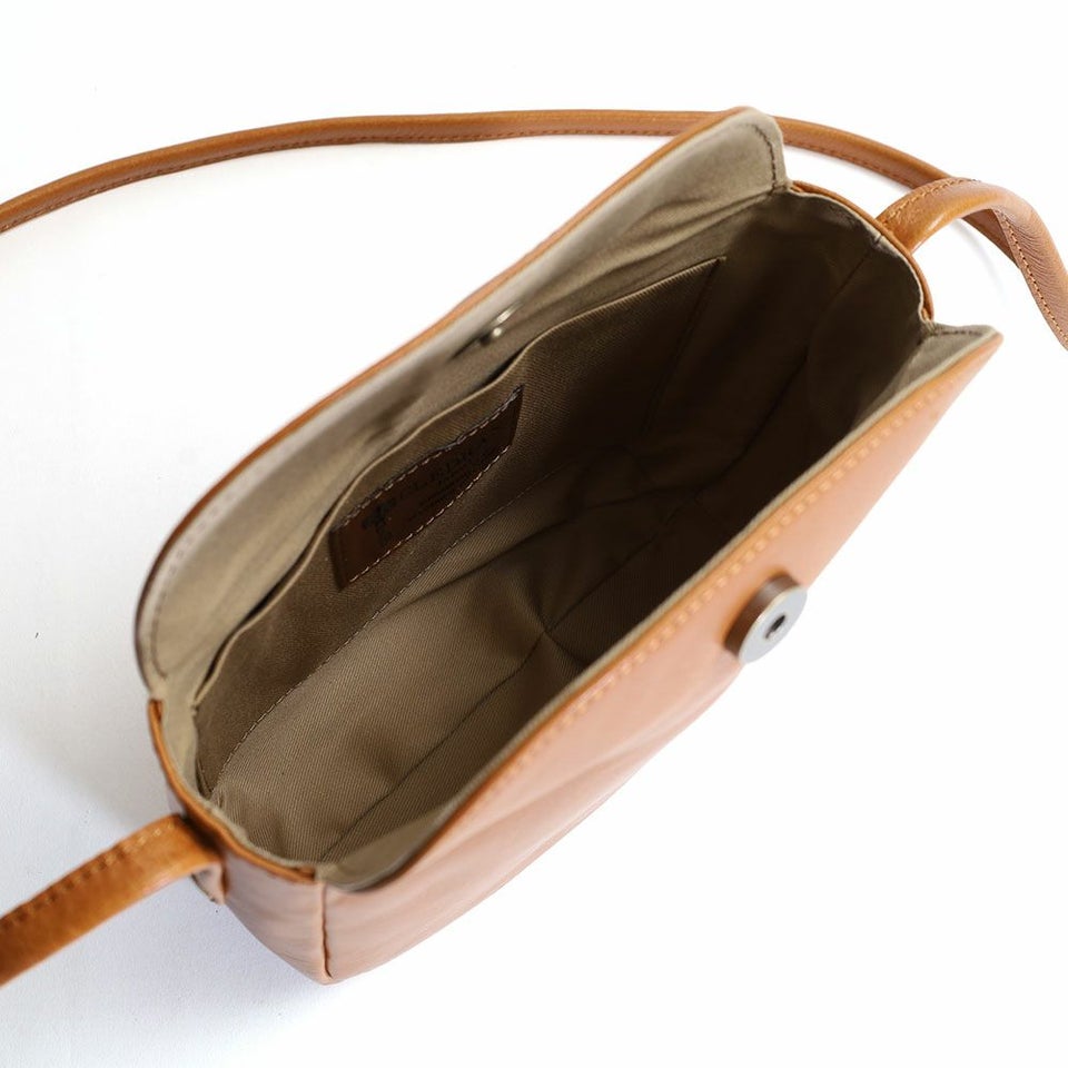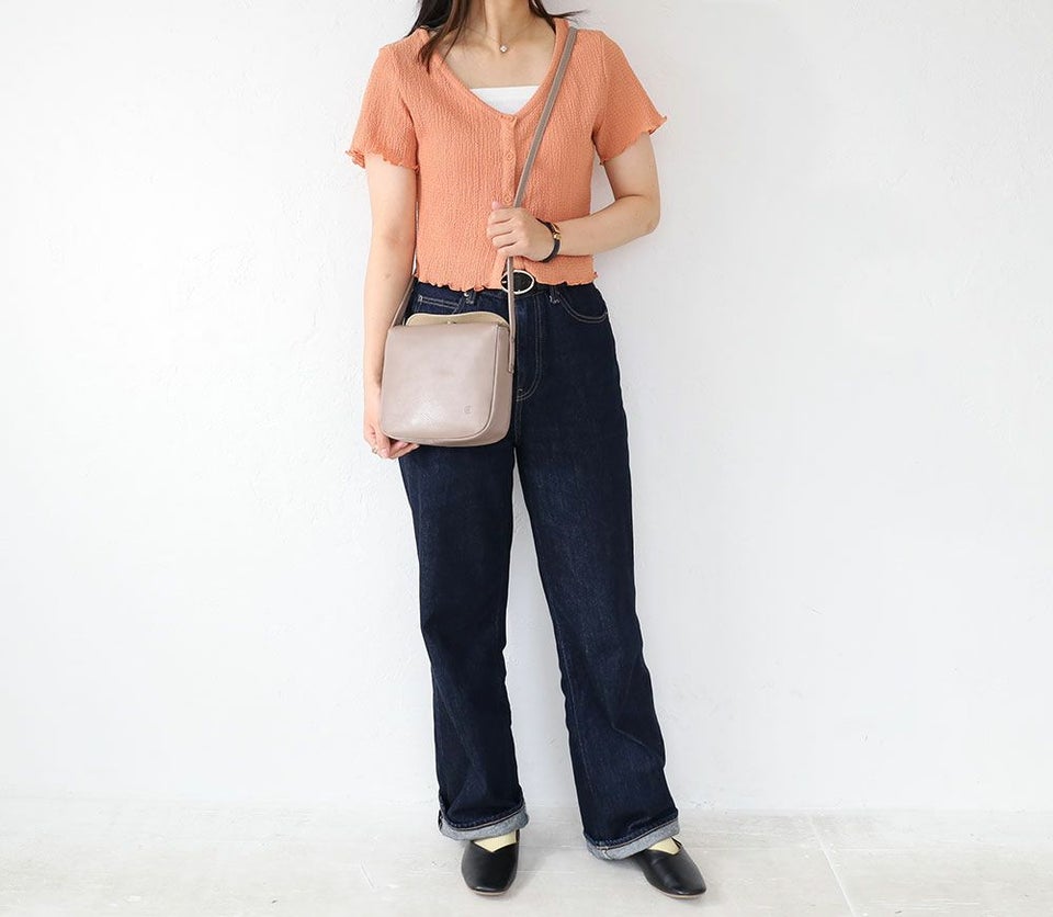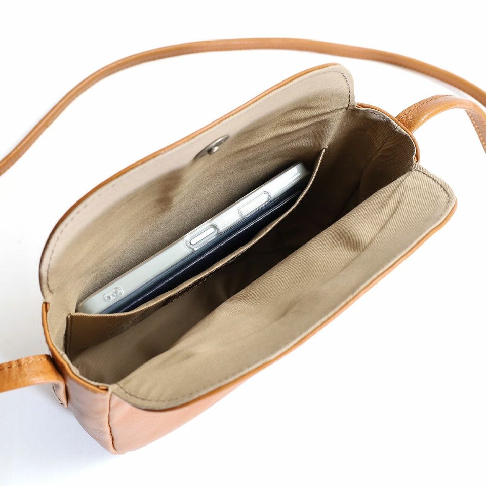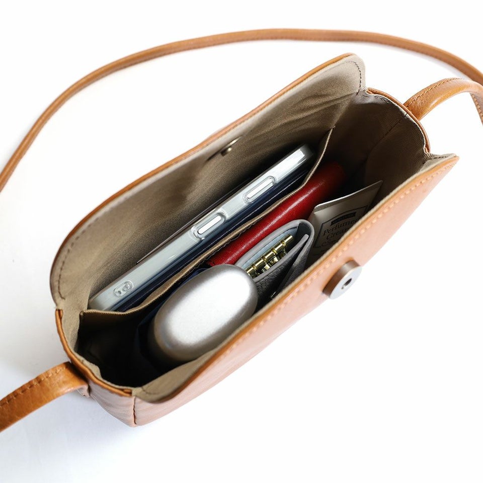 滑らかな手触りと程よい光沢感のあるレザーで仕立てたショルダーバッグです。