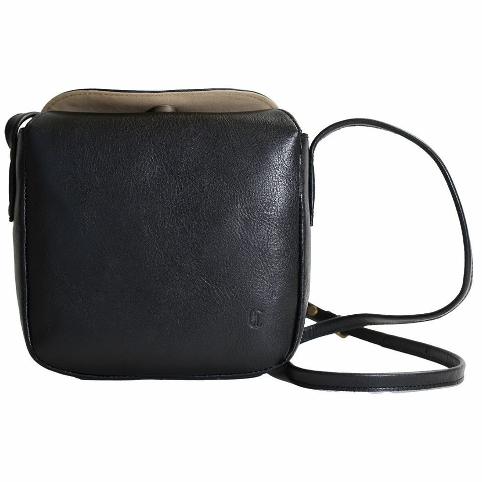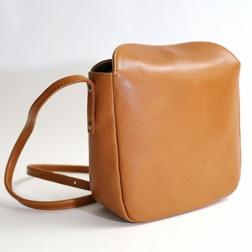 ボックス型のレザーショルダーバッグ