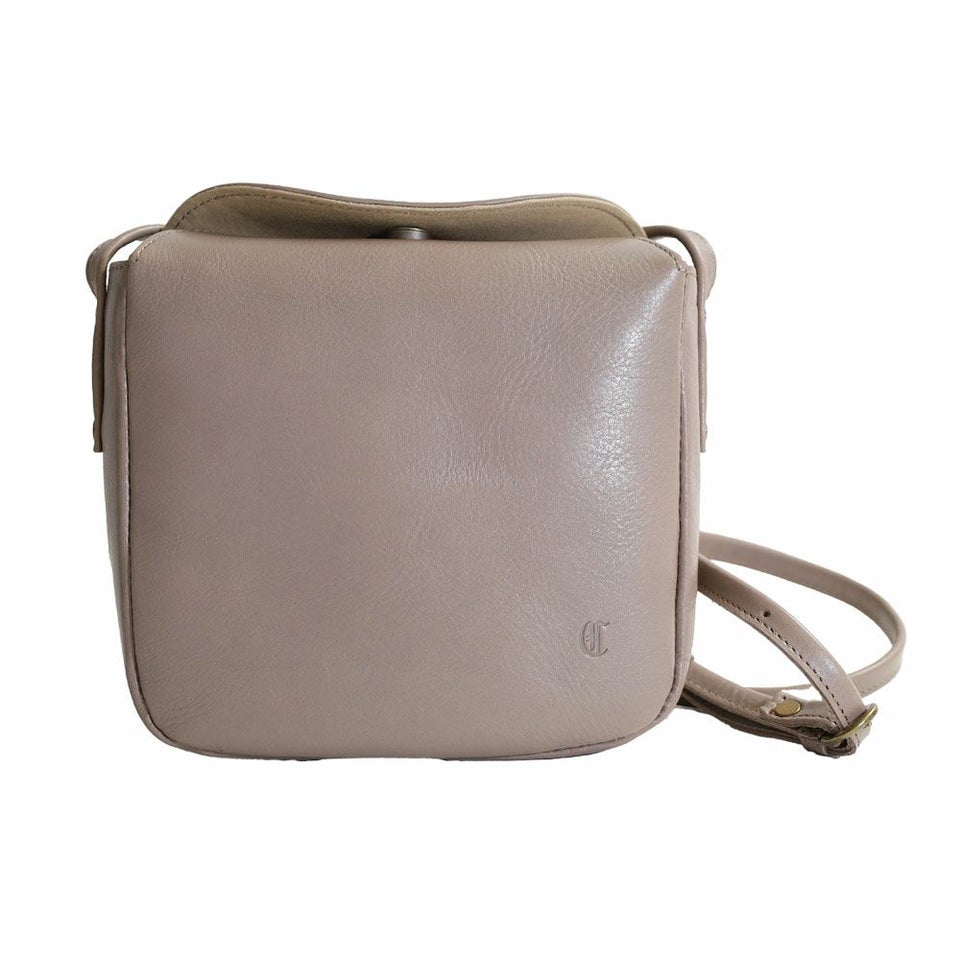 滑らかで艶やかな質感を愉しむ。ボックス型のレザーショルダーバッグ