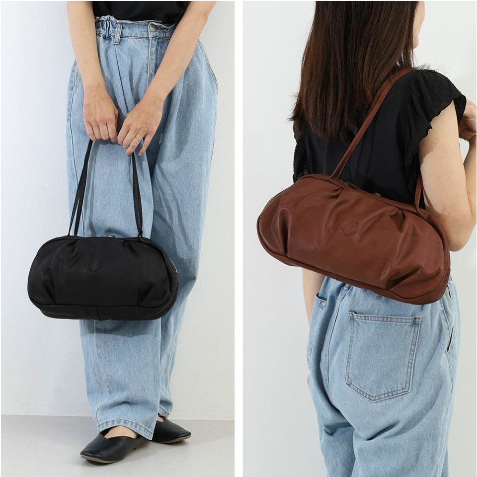 長めのハンドルは、アウターの上からでも肩にすっと掛けられる設計です。