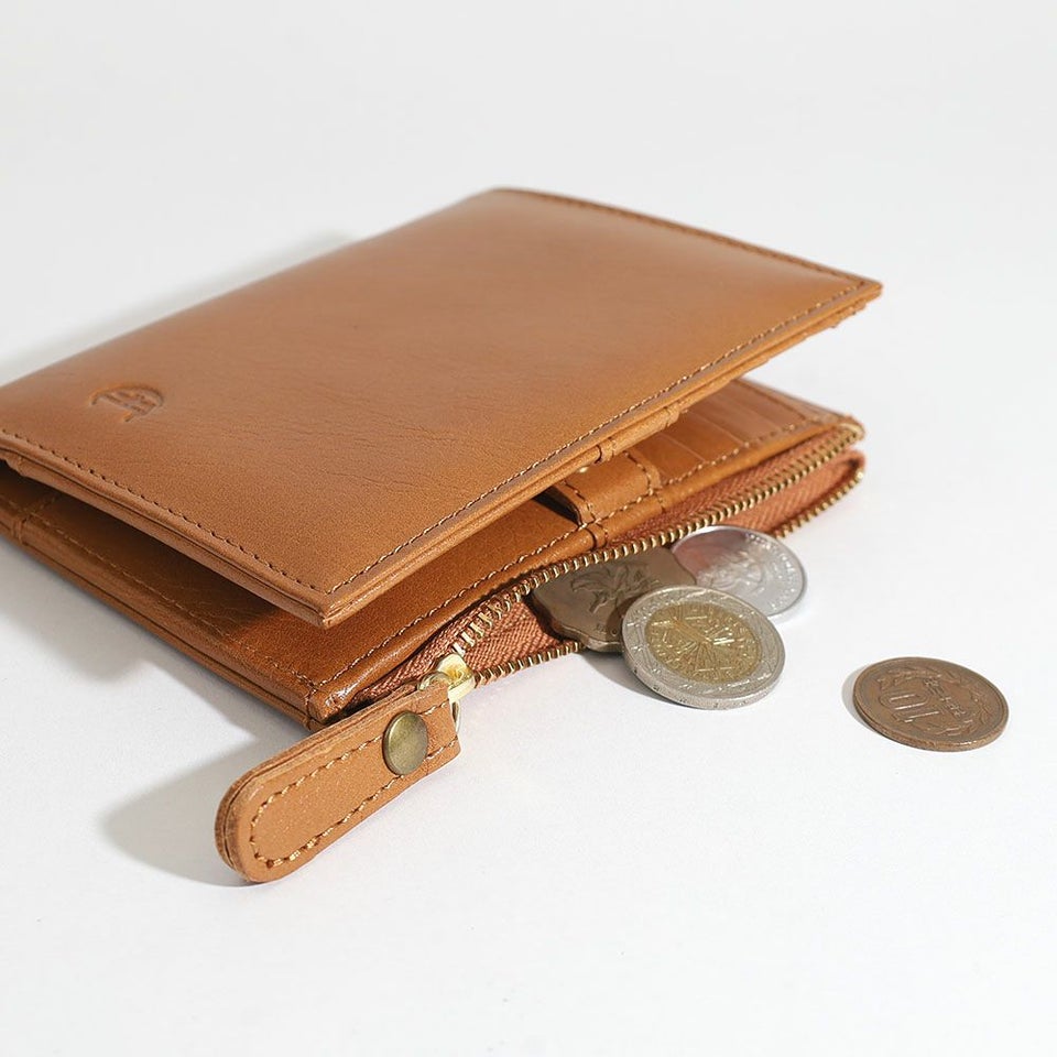 見開きタイプの収納豊富なカードポケット、紙幣だけでなくレシートやチケットを仕分けておける二層式紙幣スペース、小銭だけのお会計でもスピーディに対応可能なファスナー式小銭入れがあります。