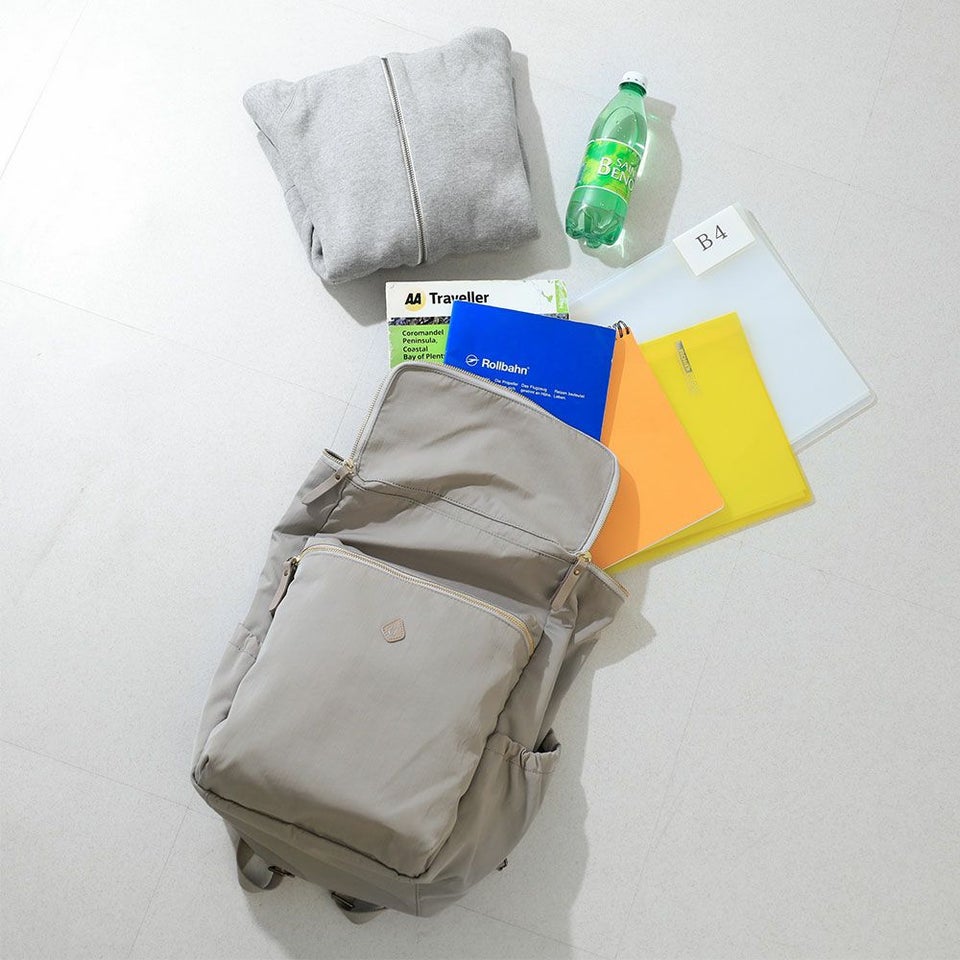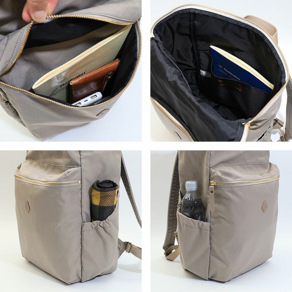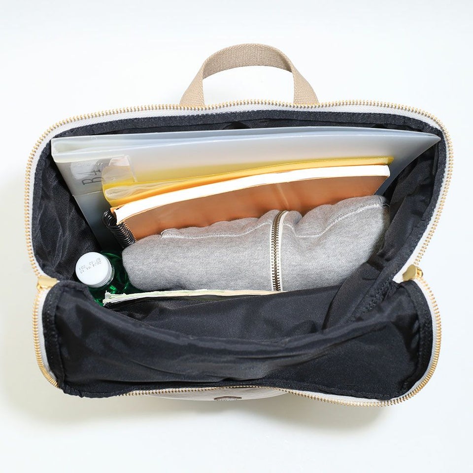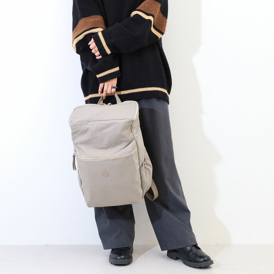 メインファスナーが大きく開き、底までしっかり確認できる視認性を確保しています。必要なものがすぐ見つかるため、忙しい朝や移動中でもスムーズに出し入れできます。荷物の多い日でもストレスなく扱えて毎日の動作を心地よくサポートします。