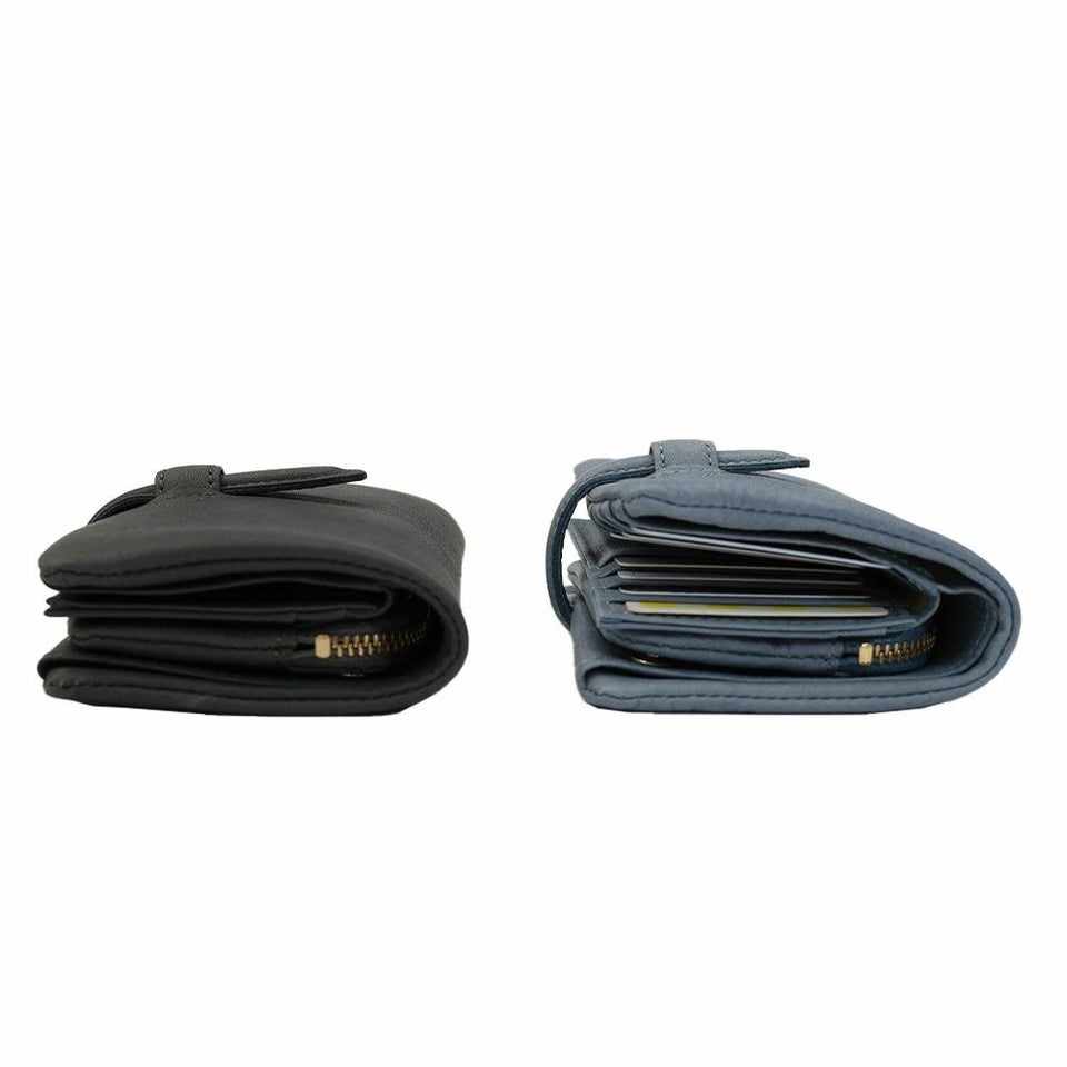 コンパクトな二つ折りサイズながら、カード10枚、札入れ、フリーポケット、小物が入る大容量設計。さらに取り外し可能なコインケース付きで、使い方の幅も広がります。スライド式の留め具は中身の量に合わせて自然にフィットし、パンパンになりにくいスマートさを実現しています。