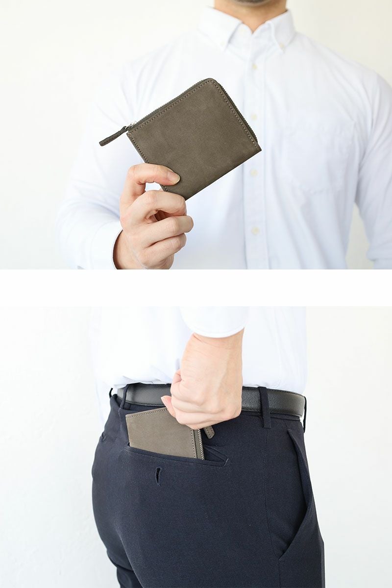 コンパクトなサイズ感に収納力を兼ね備えた、L字ファスナータイプの二つ折り財布です。