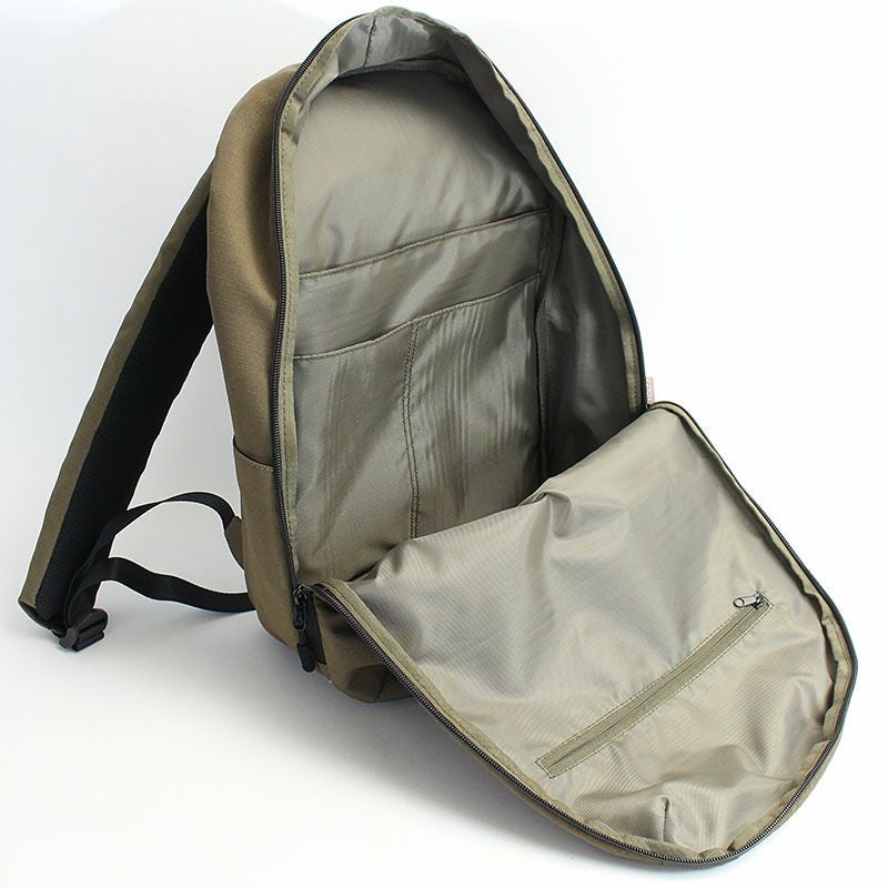 バッグ内部にはファスナーポケット、PC収納、オープンポケットがあります。