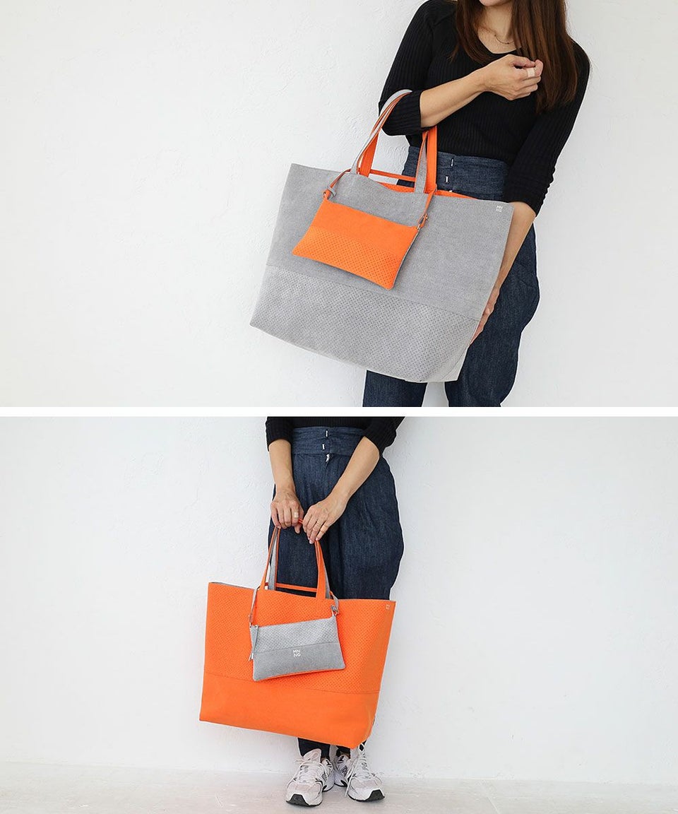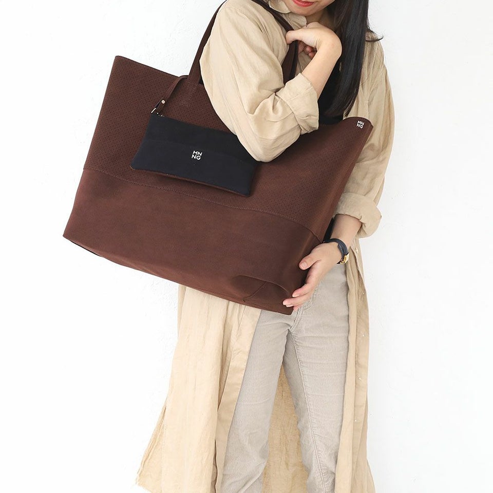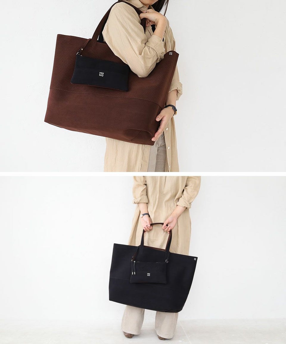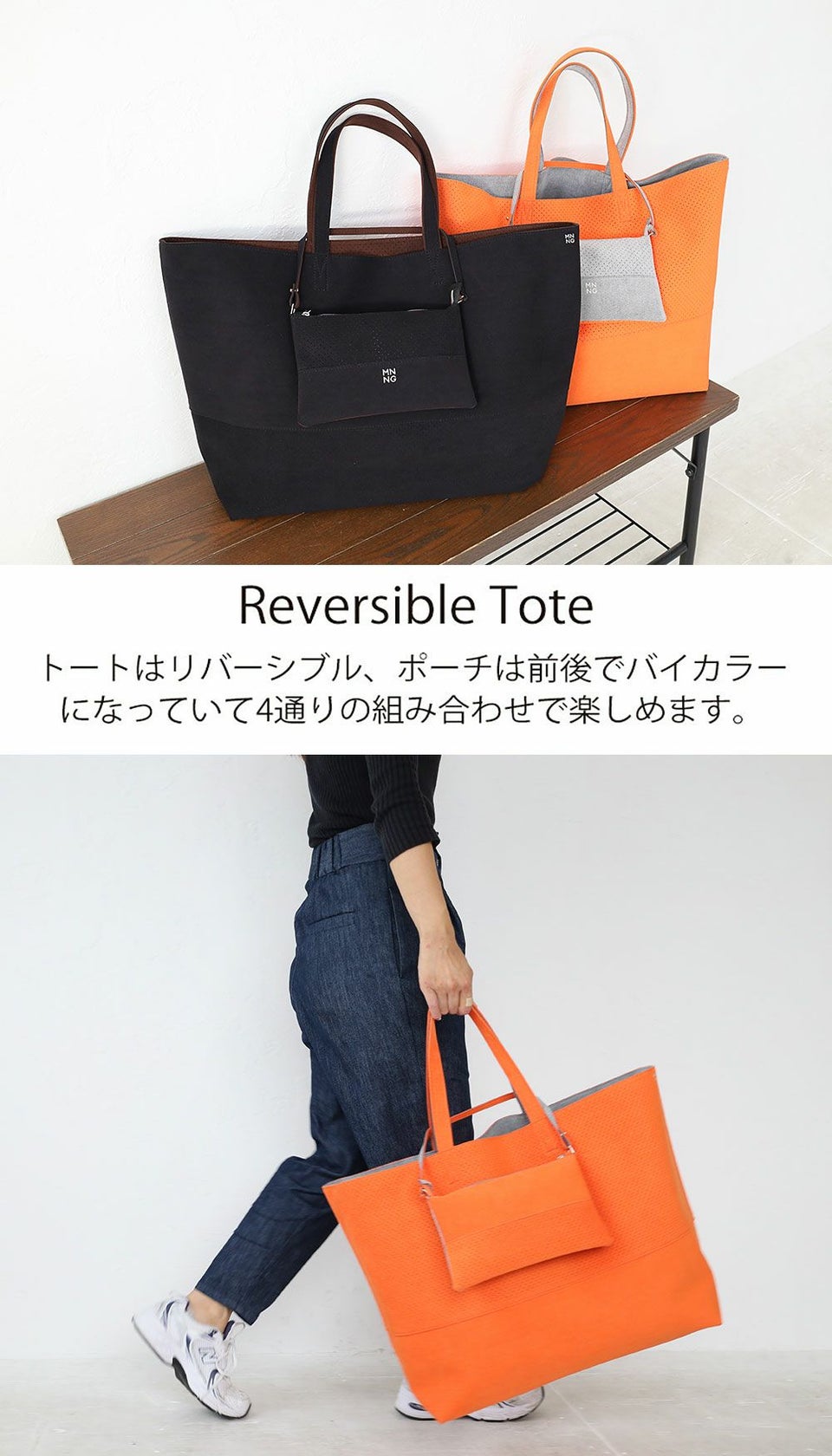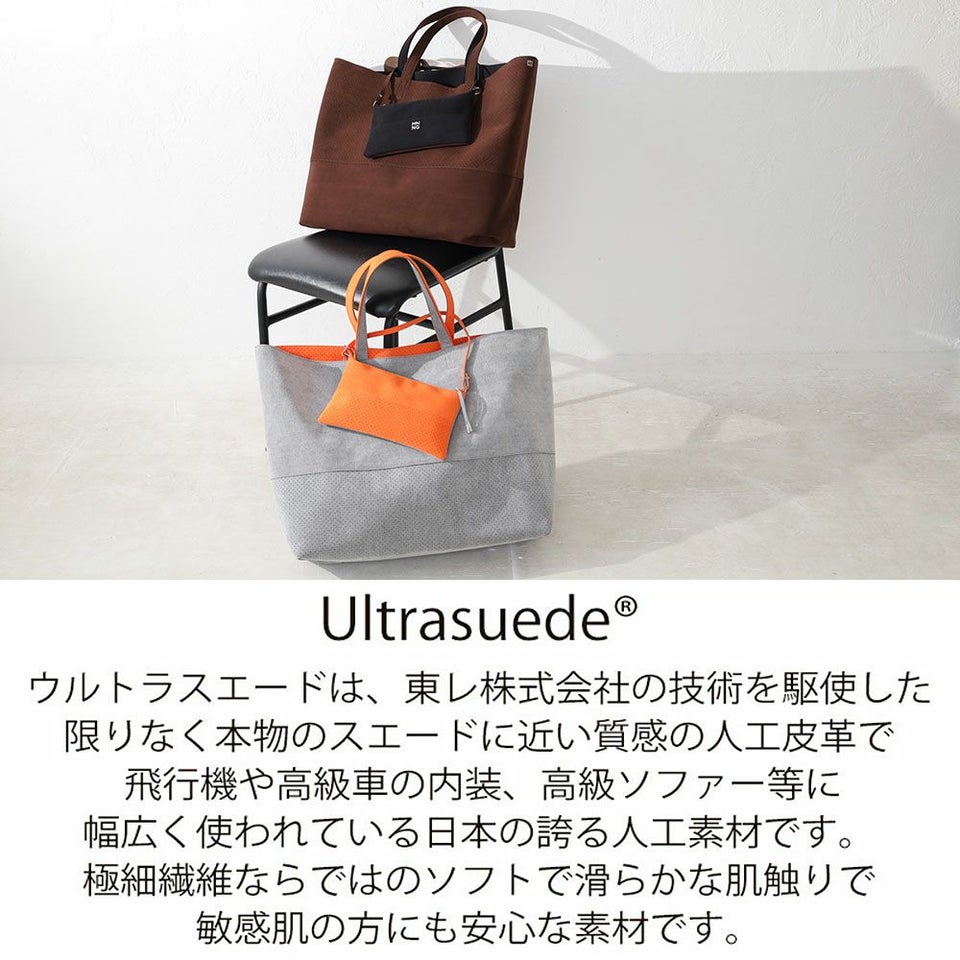 東レ Ultrasuede?使用 超軽量 洗濯機でホームクリーニング可能 2枚仕立てのバイカラーリバーシブル トート ロングウォレットが入るポーチ付き MNNG Dual Tote Large A3対応