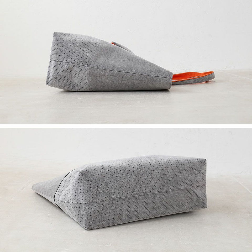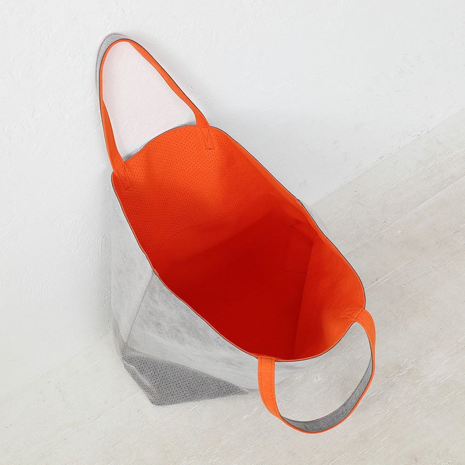 マイクロファイバー『ウルトラスエード』の特性である軽さを活かした2枚仕立てのバイカラーリバーシブルラージサイズのトートバッグ。
