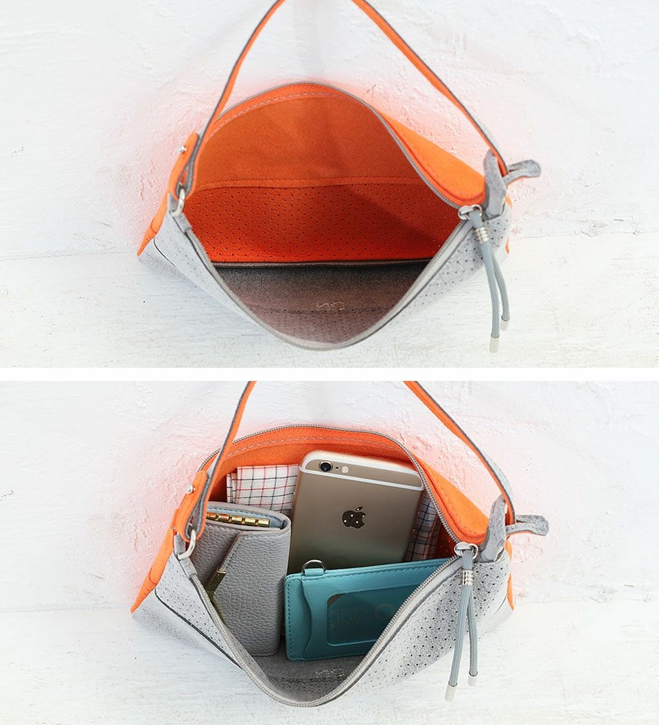 取り外しが可能なロングウォレットが入るポーチがついています。