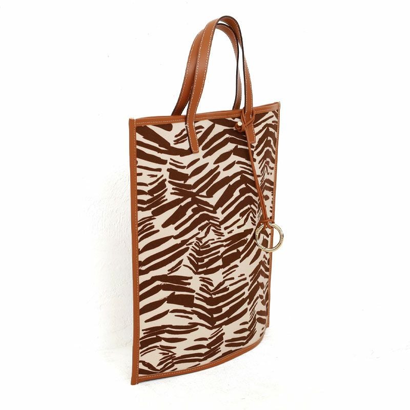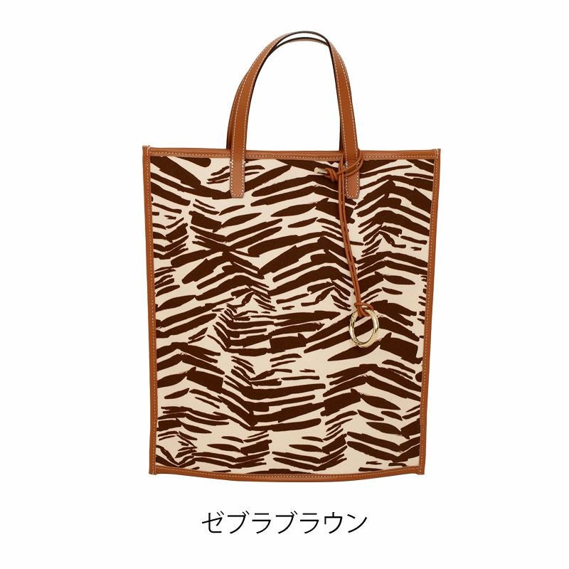 選べるノベルティプレゼント!キャンバス素材と牛革を使用した、ゼブラ柄が印象的なトートバッグ 送料無料