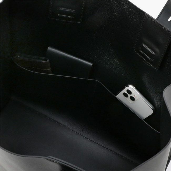 直線と曲線を組み合わせた外装デザインの中に都会的な上質さや革本来が持つ上品さを兼ね備えた「Double Face Series」のトートバッグ。