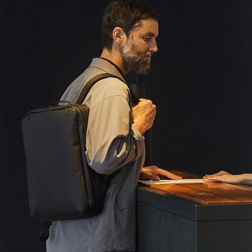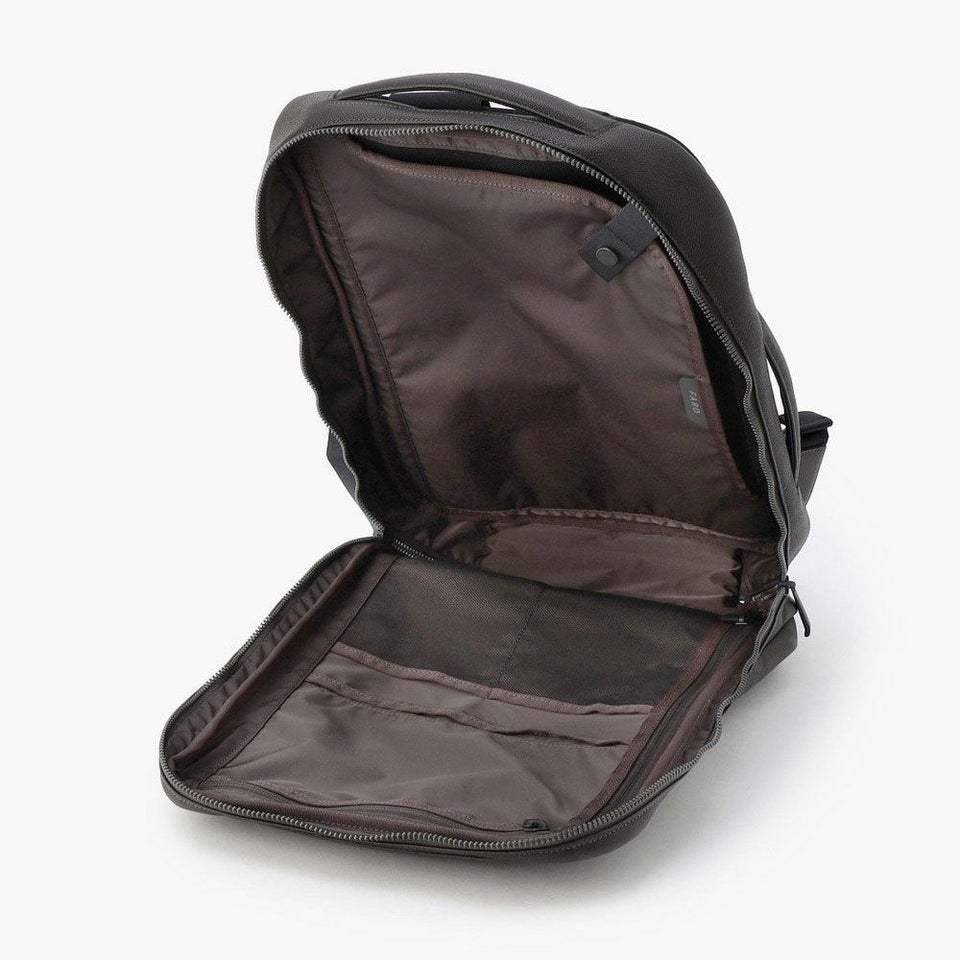 シンプルなルックスの2WAYバックパック。ショルダーベルトを仕舞うことでブリーフケースのようにもお使いいただけます。