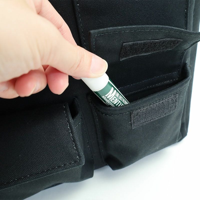 フロントにはよく使う小物を収納できるポケット機能が多数搭載。