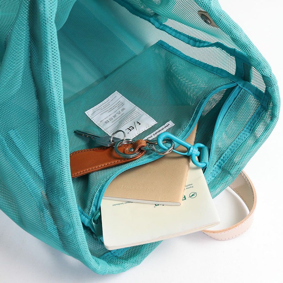 中に巾着式の裏地が付いている為、荷物の透けも気にせず使用していただけます。