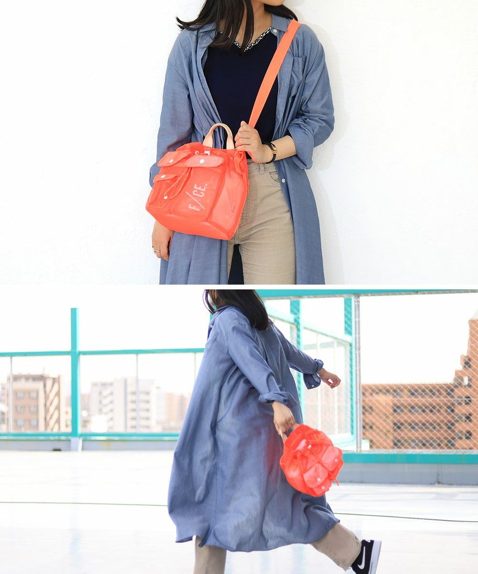 中に巾着式のポーチが付いている為、荷物の透けも気にせず使用していただけます。