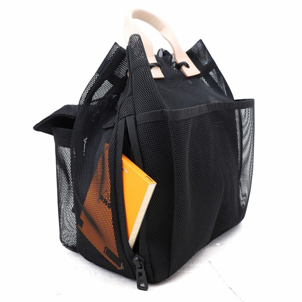 中に巾着式の裏地が付いている為、荷物の透けも気にせず使用していただけます。